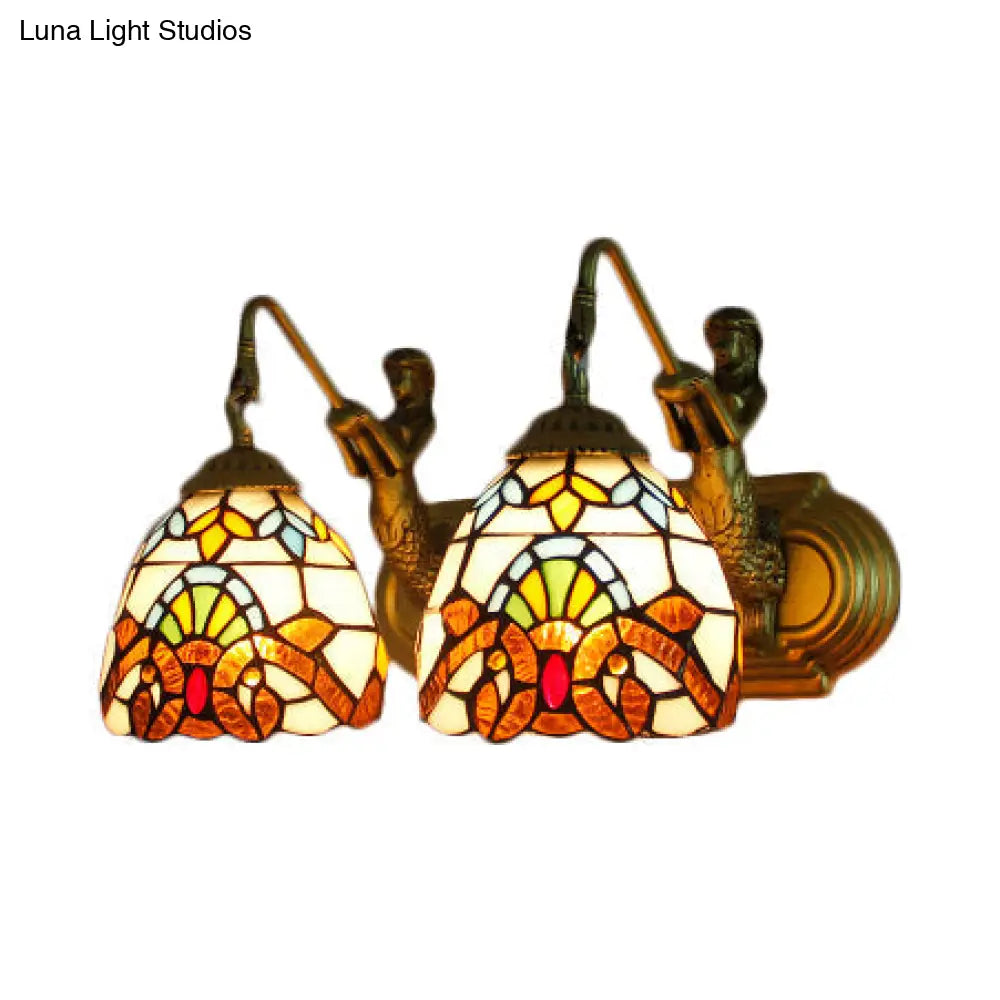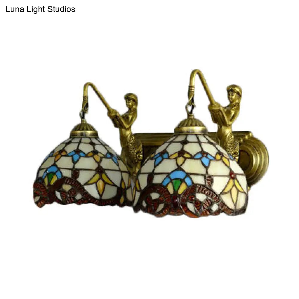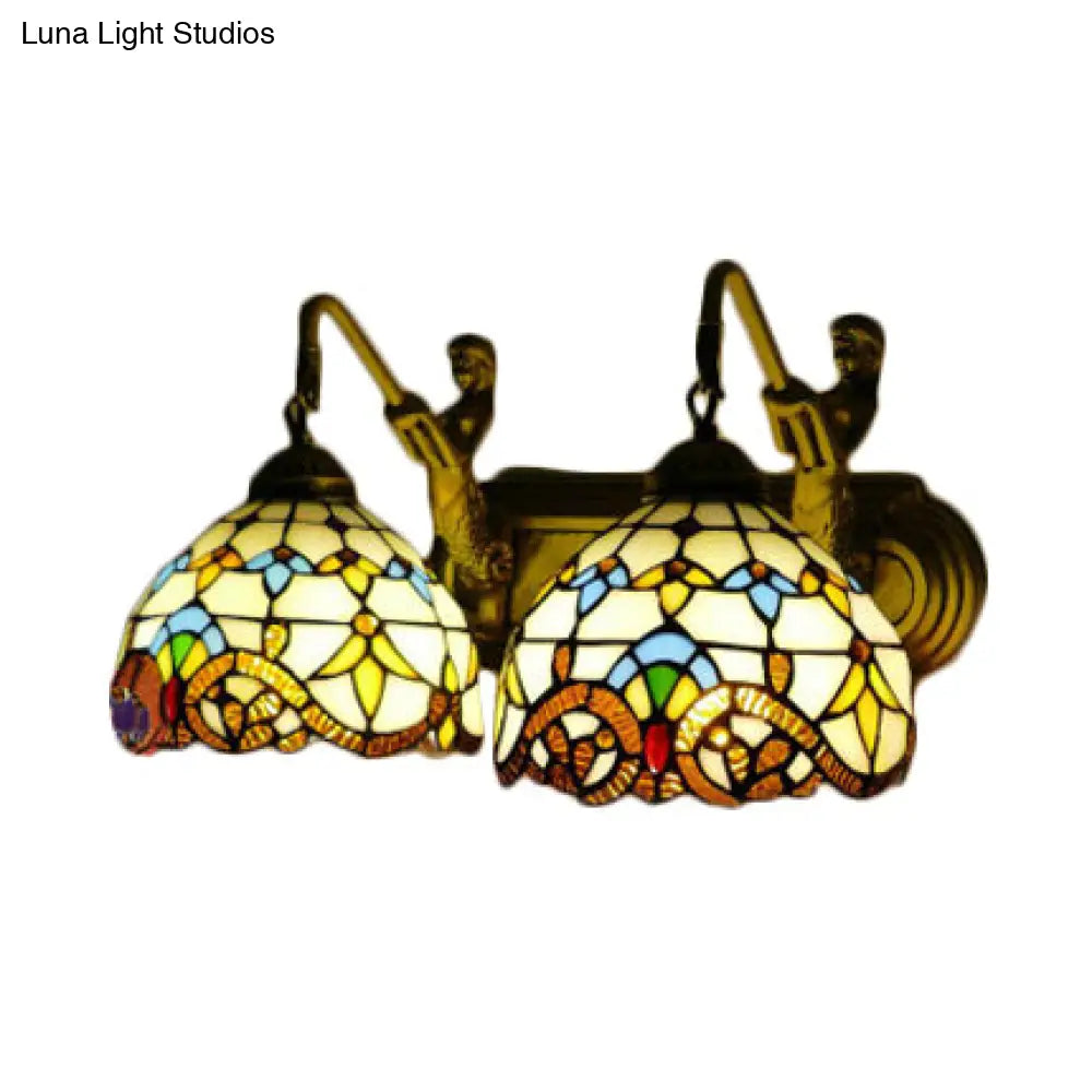 Aplique de pared con cúpula de vitral multicolor beige estilo barroco, 16"/18" de ancho