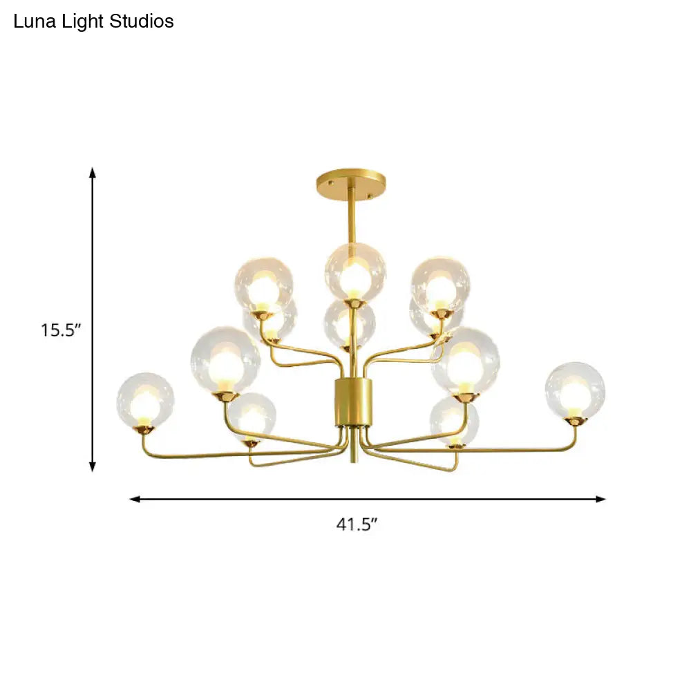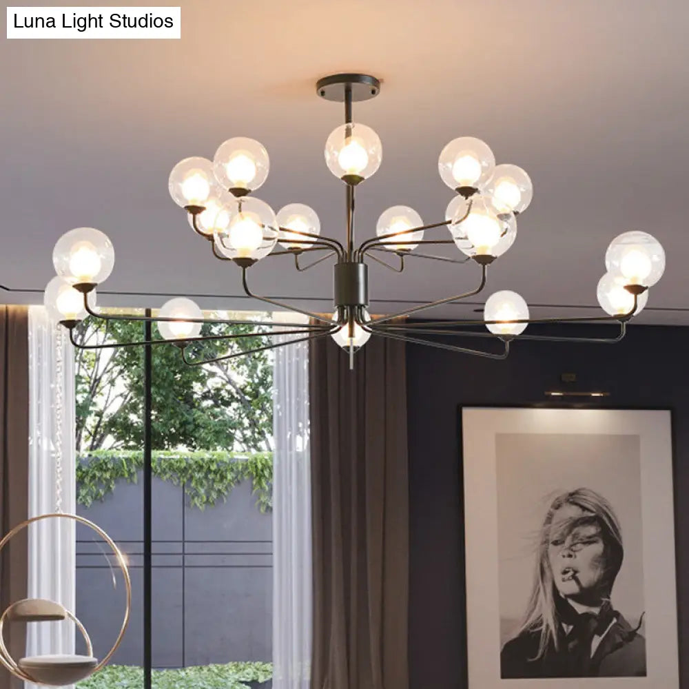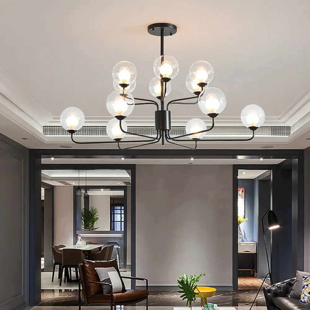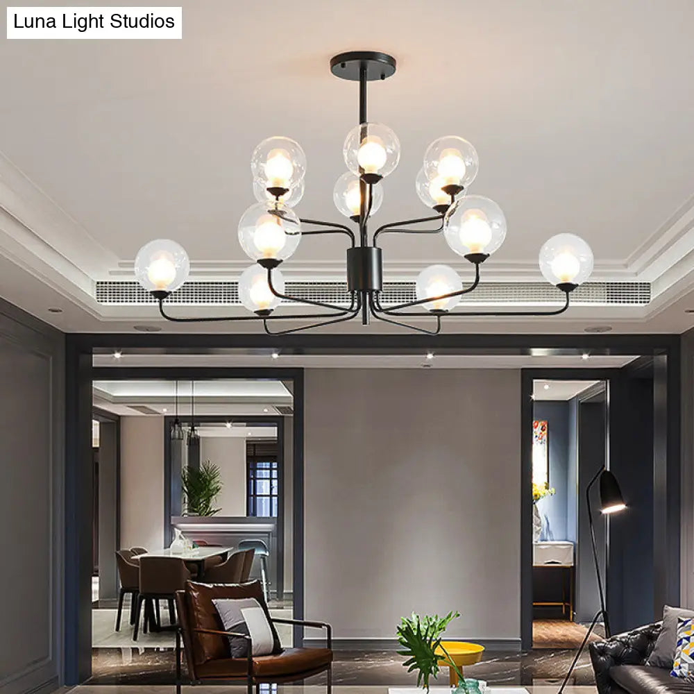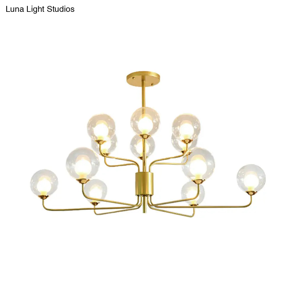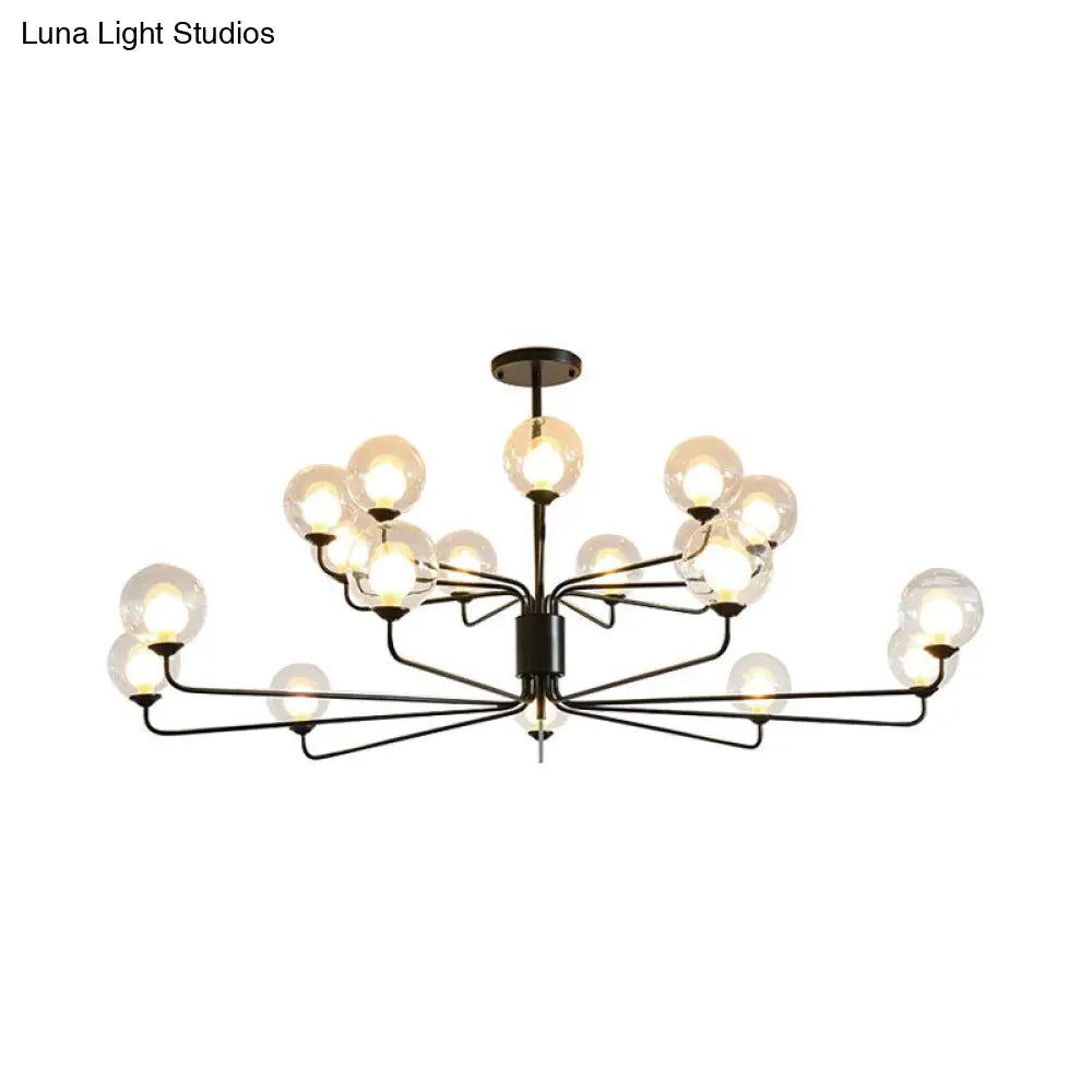 Lámpara de araña contemporánea de cristal transparente de dos niveles con diseño radial - 8/12/18 luces - Lámpara colgante negra/dorada