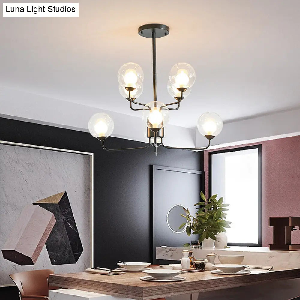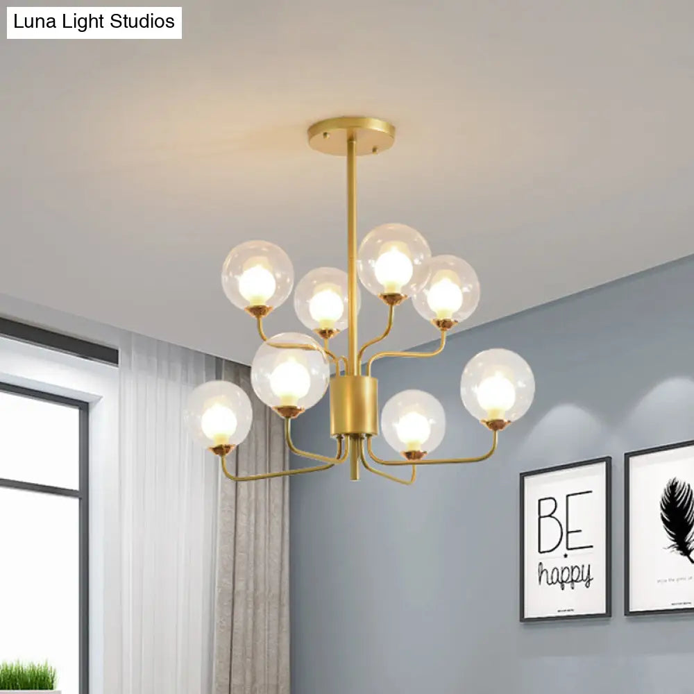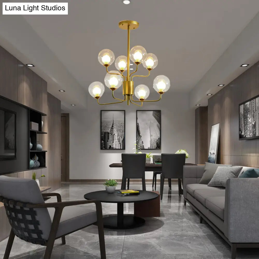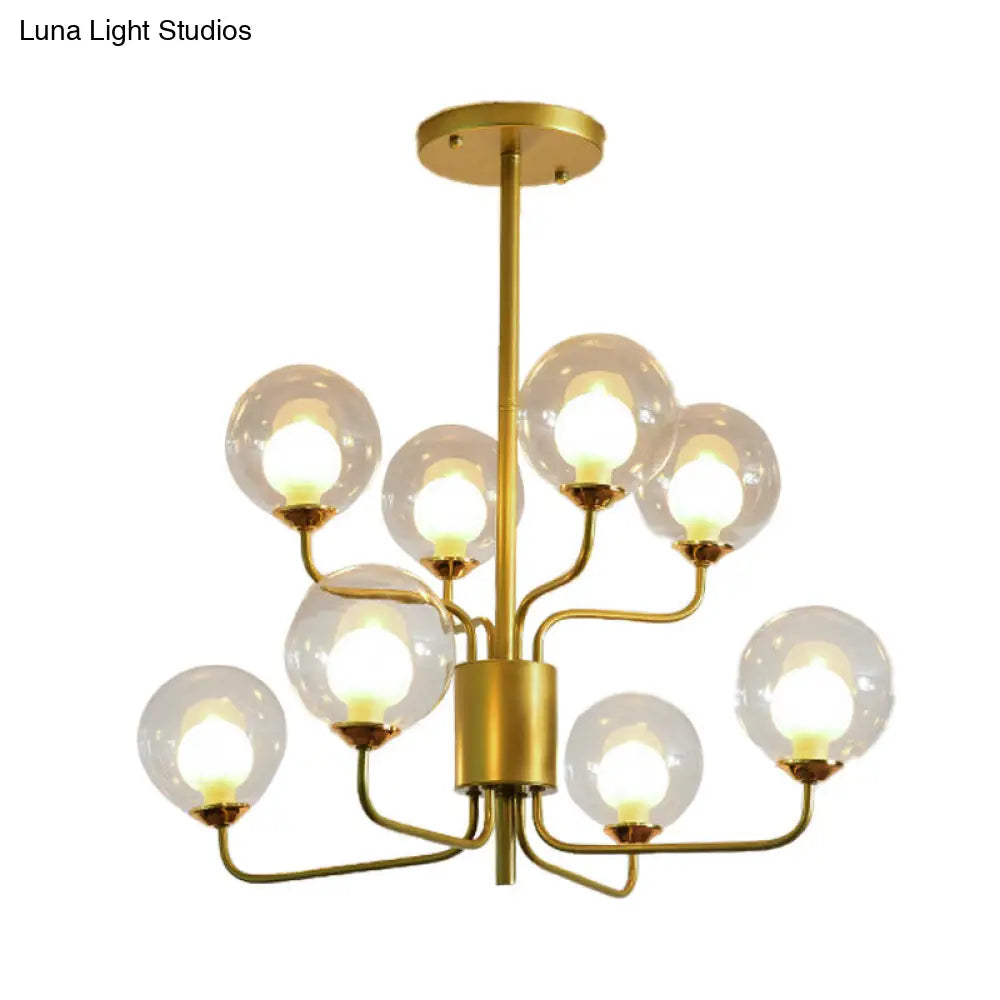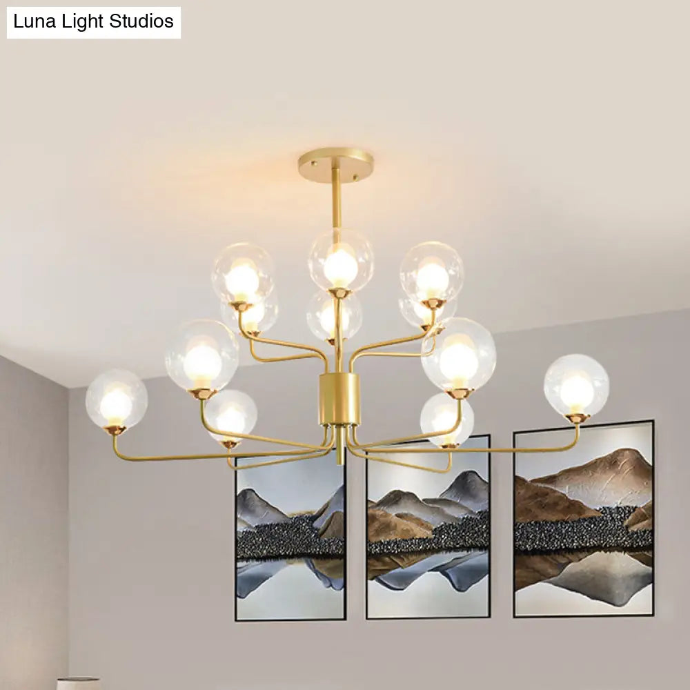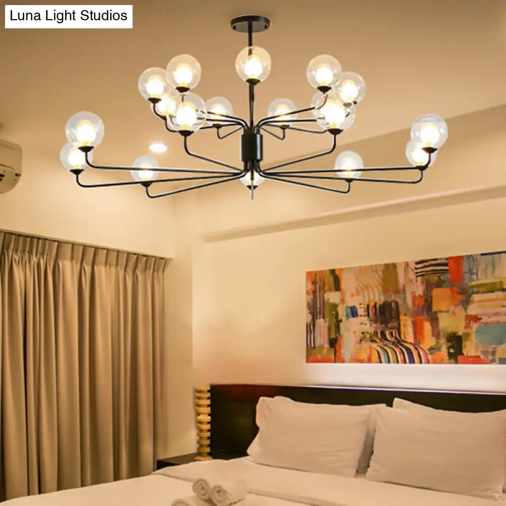 Lámpara de araña contemporánea de cristal transparente de dos niveles con diseño radial - 8/12/18 luces - Lámpara colgante negra/dorada