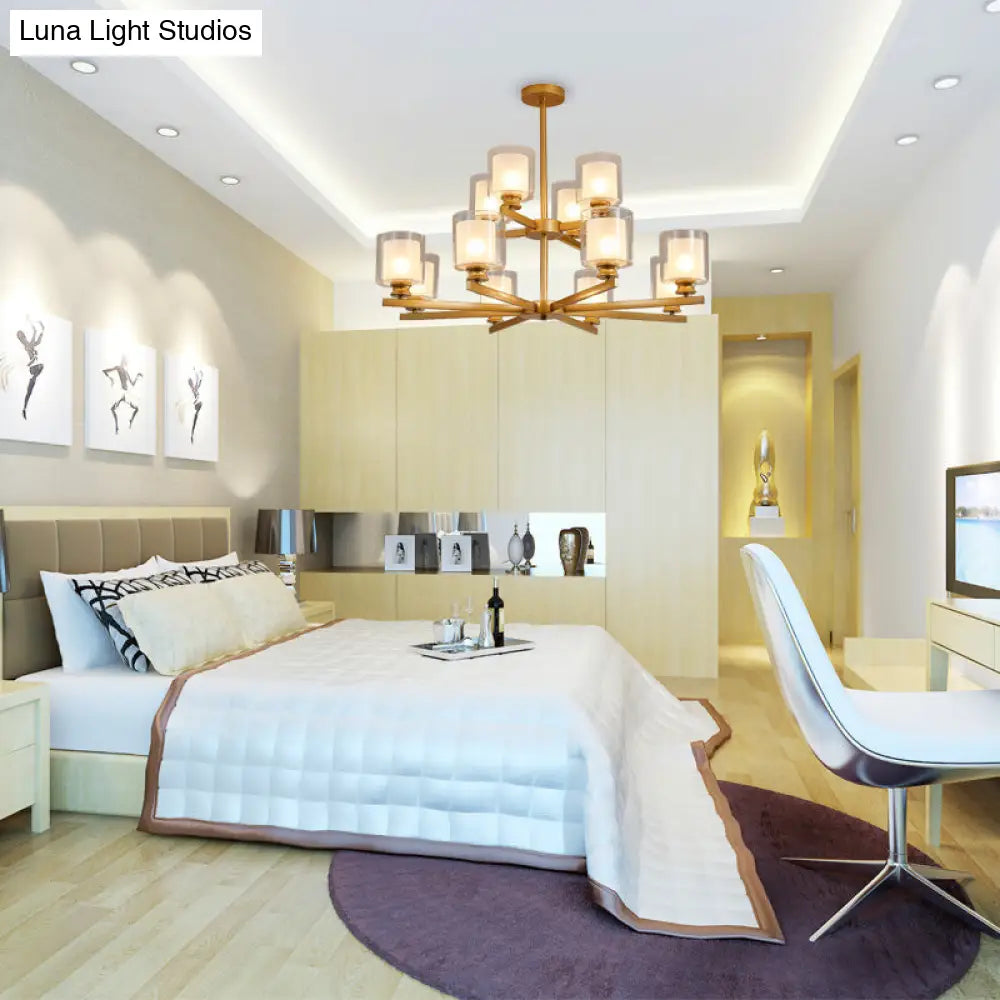 Lámpara de araña modernista de cristal blanco de dos niveles con diseño radial - 12 luces: Lámpara colgante negra/dorada/plateada
