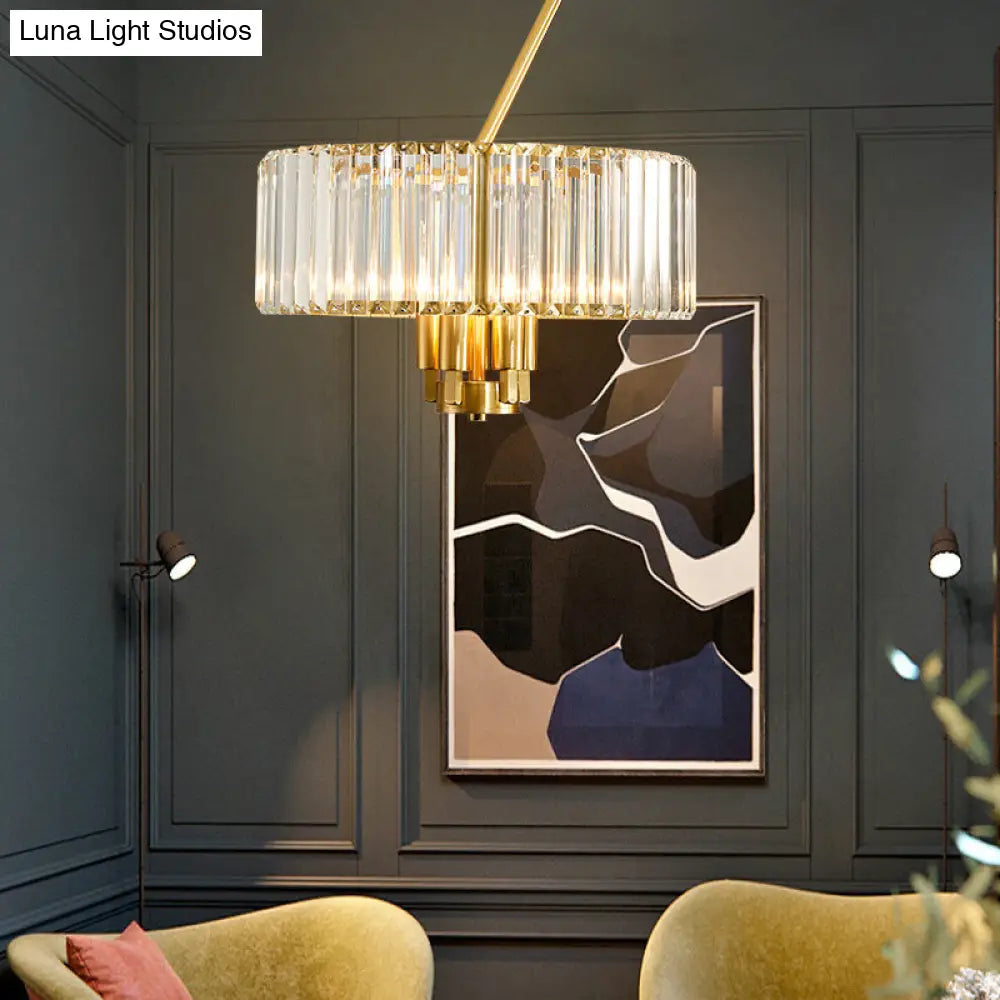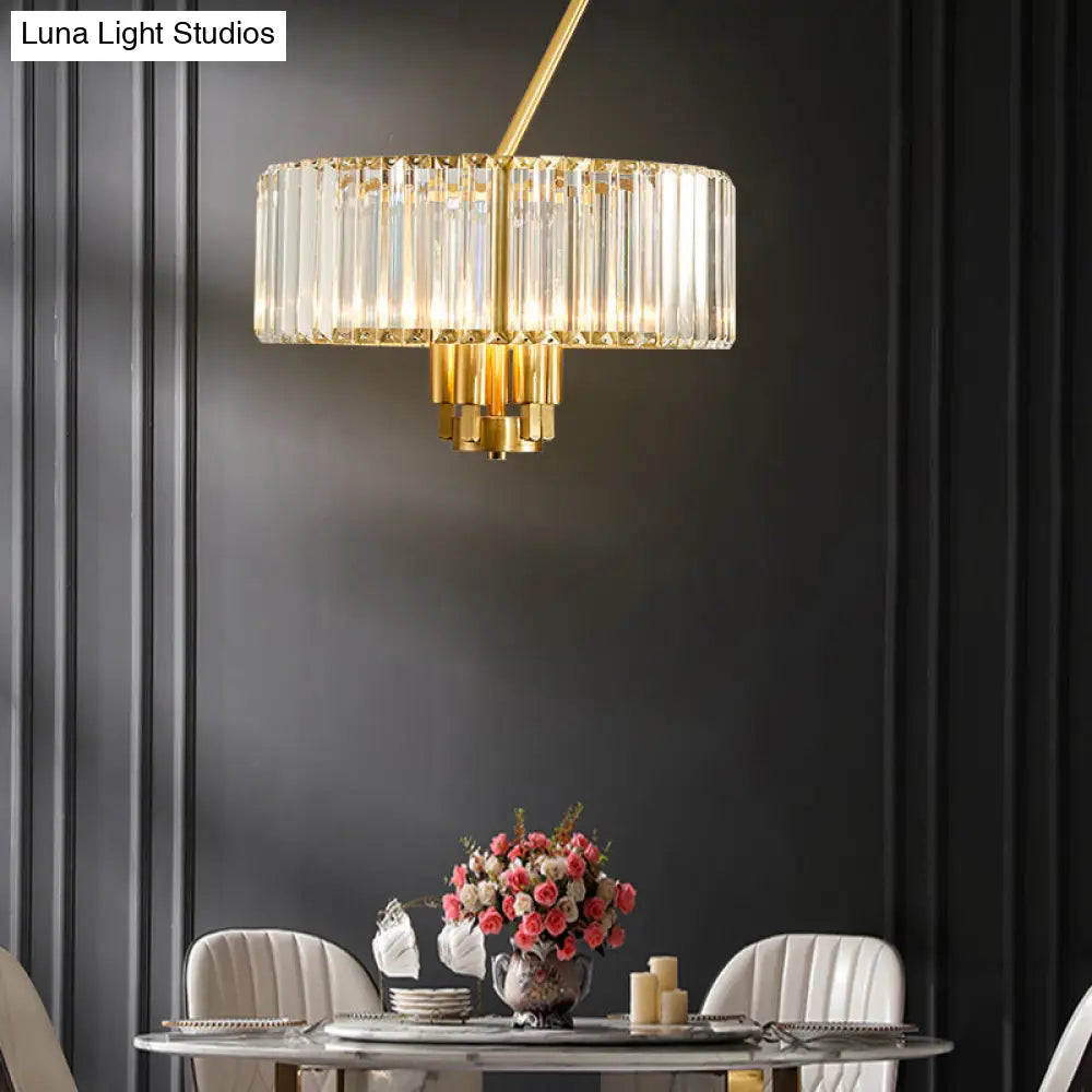 Lámpara de araña colgante moderna con acabado dorado y cristal (tamaño tambor) - 3/4/6 luces