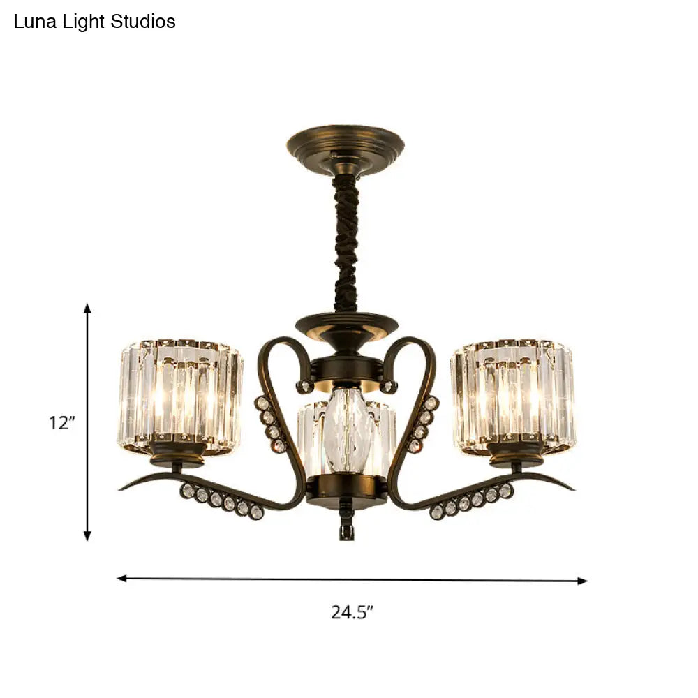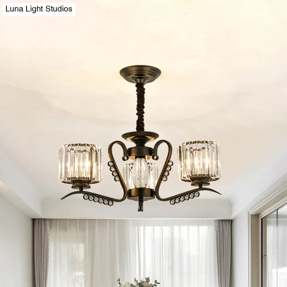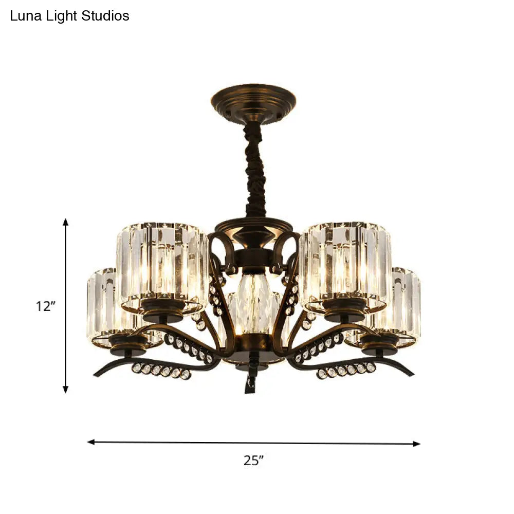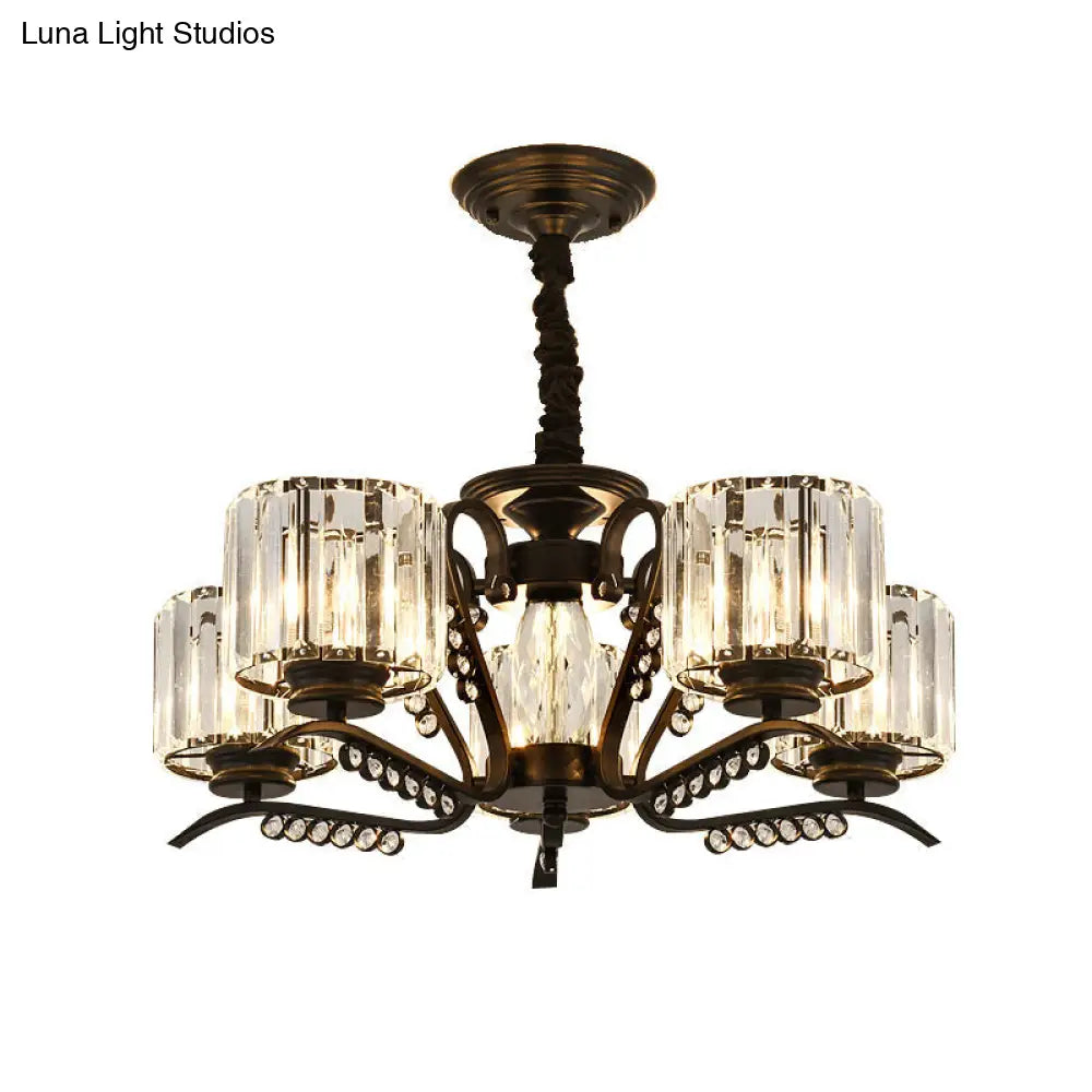 Lámpara de techo moderna negra con pantalla cilíndrica de cristal - 3/5 luces - Perfecta para salas de estar