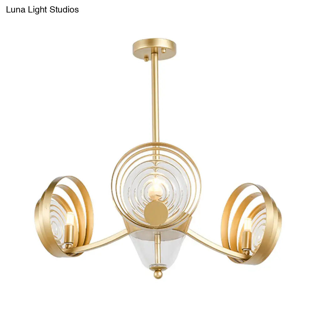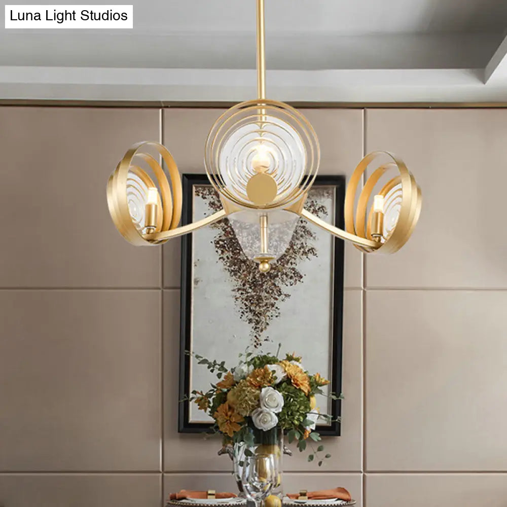 Lámpara de araña colgante moderna de cristal dorado de 3 cabezas para sala de estar