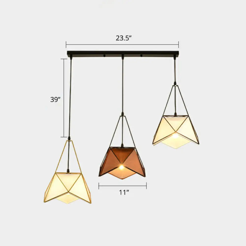 Lámpara colgante nórdica de metal de 3 luces - Lámpara de techo tipo racimo con estructura de alambre para comedor