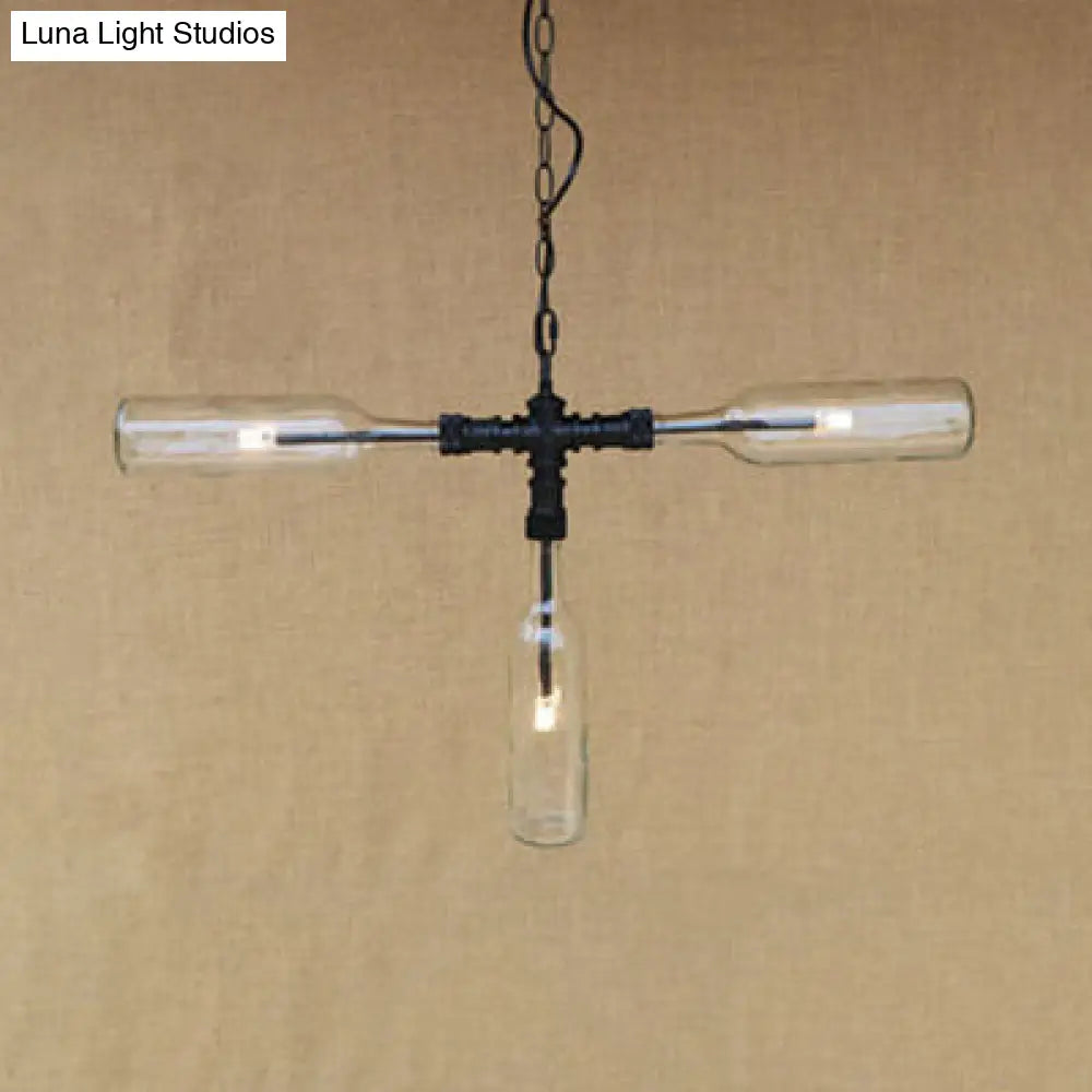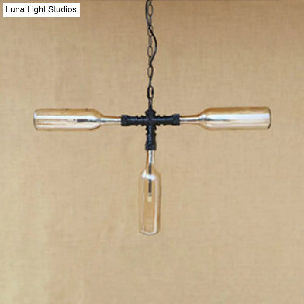 Lámpara de araña de estilo vintage con 3 pantallas de cristal en gris humo/azul para iluminación de bares