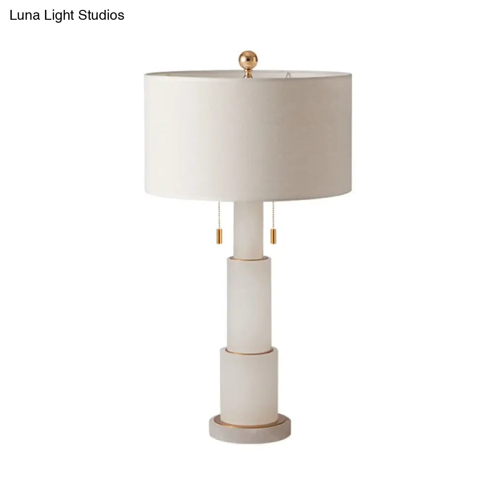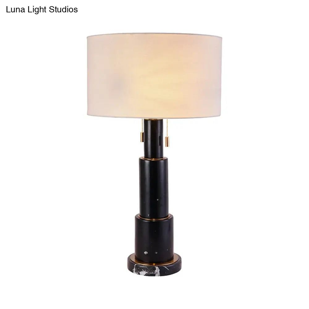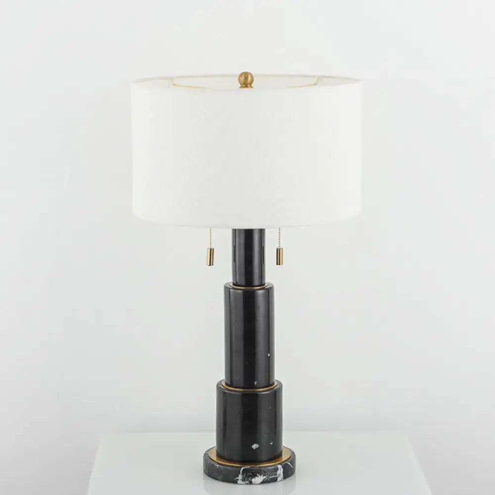 Lámpara de noche de mármol de 3 niveles: Lámpara de mesa minimalista con cadena, negra/blanca, pantalla cilíndrica de tela