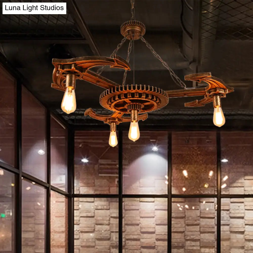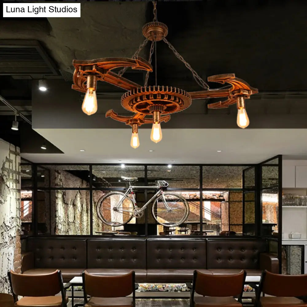 Lámpara de techo colgante vintage de metal bronce antiguo con 4 bombillas expuestas - Iluminación para el techo del comedor