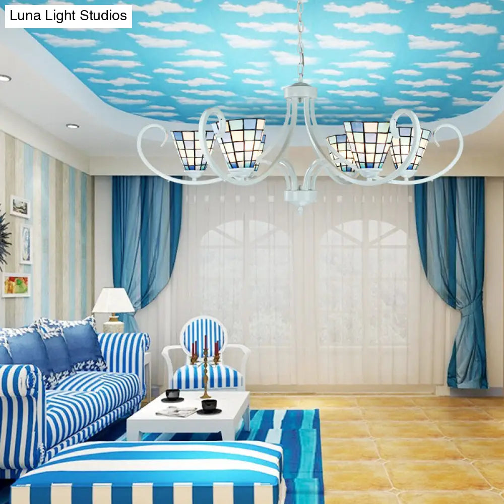 Lámpara de techo cónica Tiffany de vitrales - 5/6/8 luces, diseño de brazo curvo
