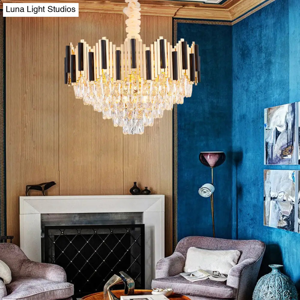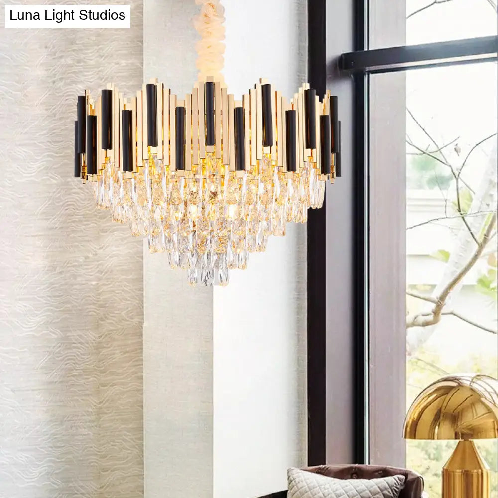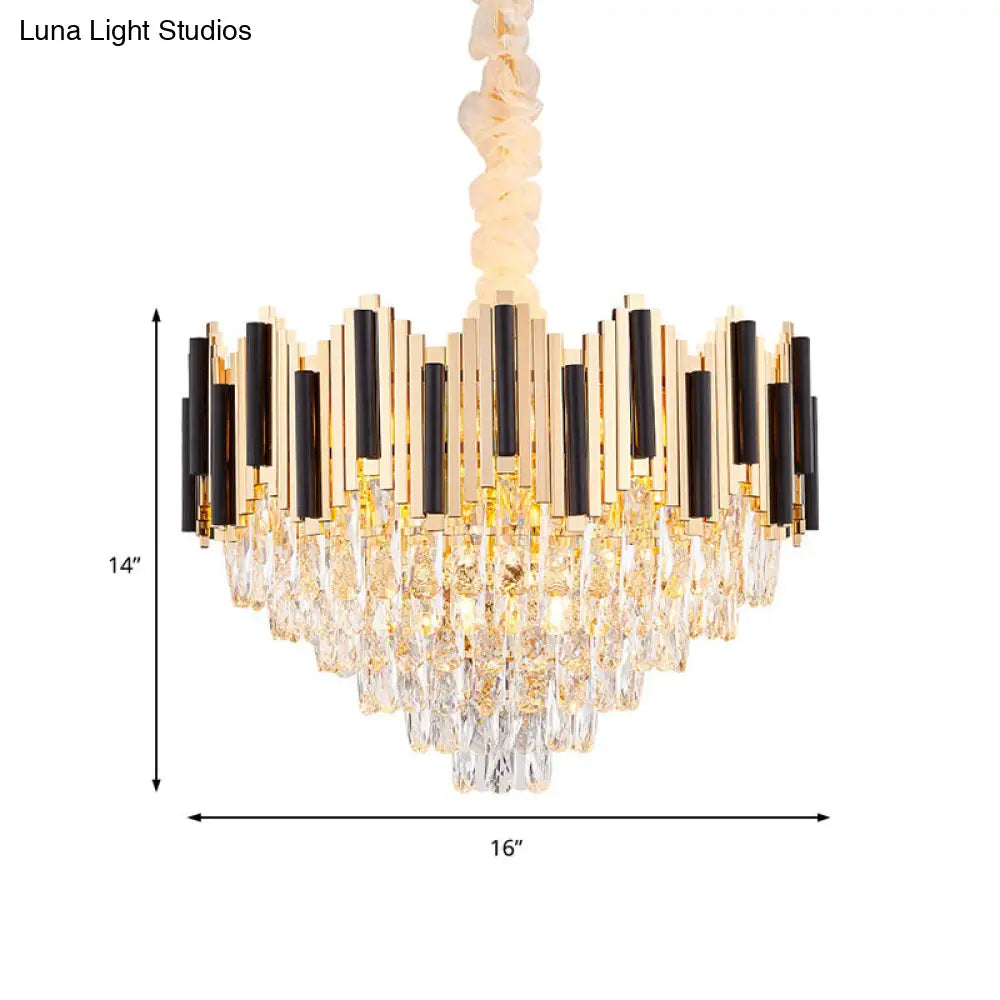 Lámpara de techo colgante contemporánea dorada de varias capas con prisma de cristal - 6/10 cabezales