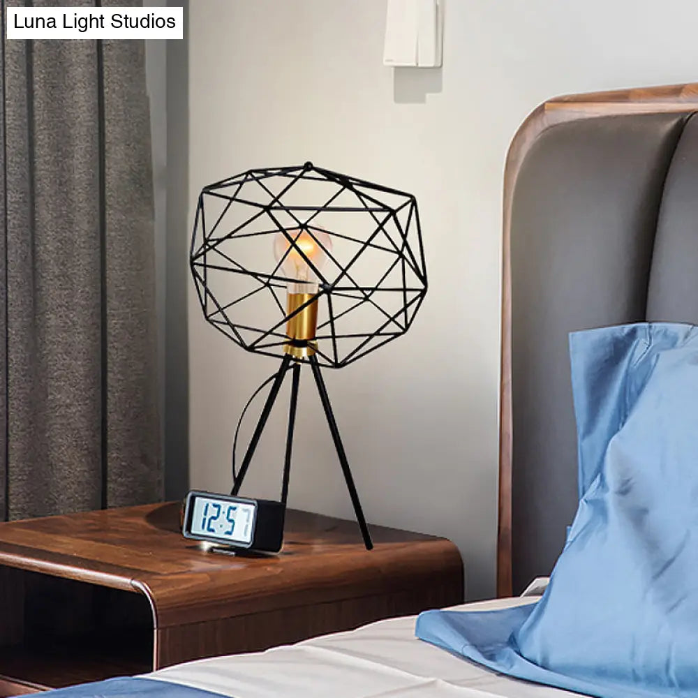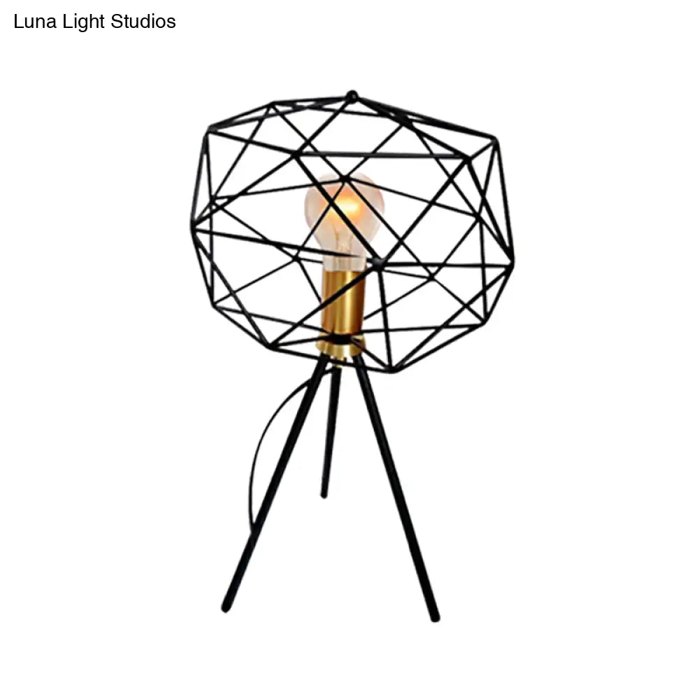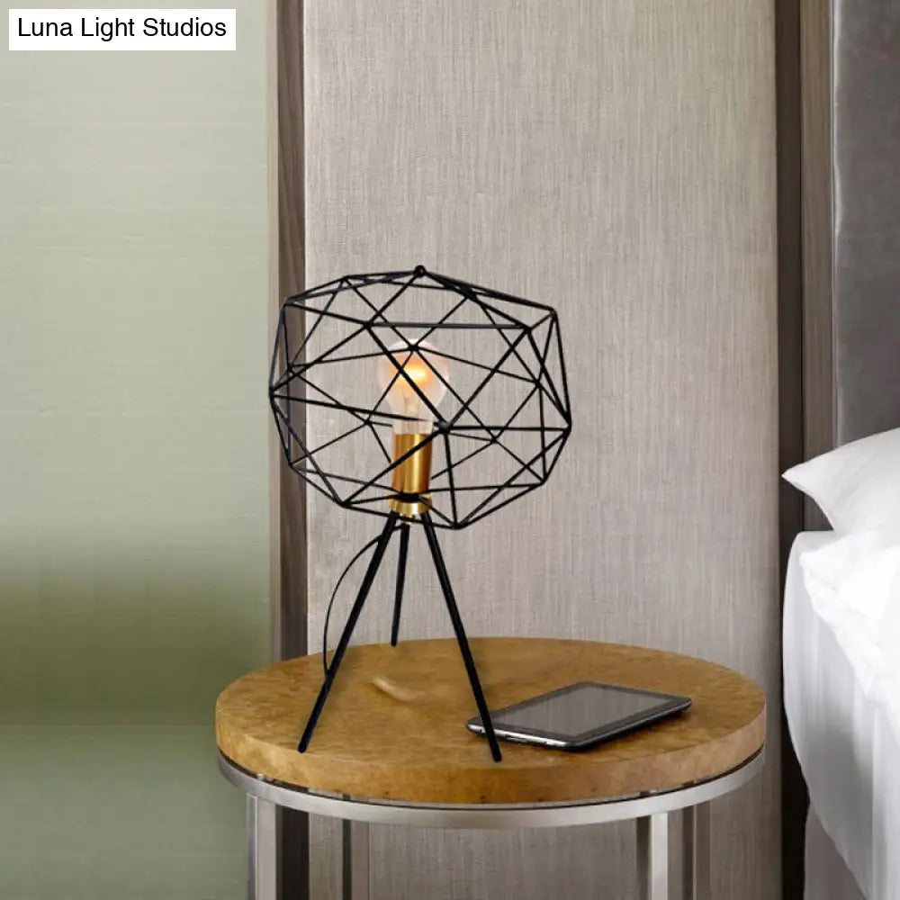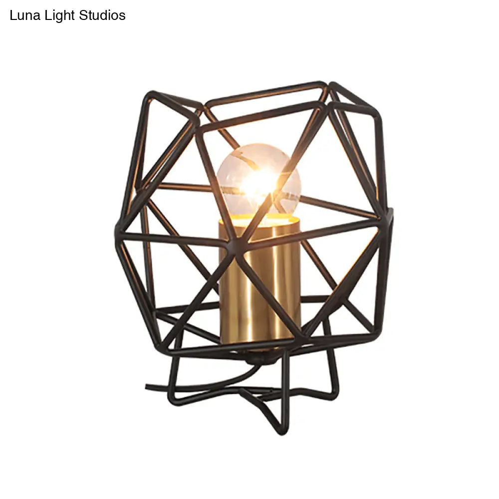 Lámpara de mesa metálica geométrica tipo jaula de 6"/12.5" de ancho - Lámpara de noche retro industrial en negro