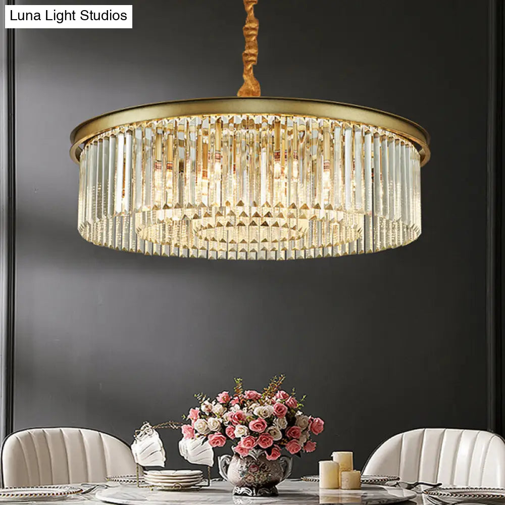 Esta preciosa lámpara de araña es perfecta para añadir un toque de elegancia a cualquier habitación. Cuenta con una pantalla redonda de cristal, acabado en latón y admite hasta seis o doce luces. Su diseño contemporáneo es ideal para cualquier hogar moderno, y las opciones de voltaje facilitan su adaptación a las necesidades eléctricas de cualquier vivienda.
