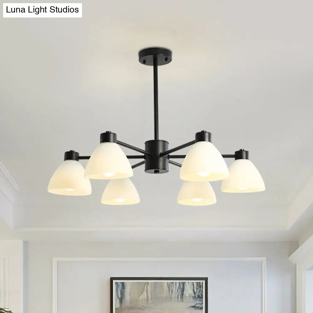 Lámpara de araña moderna negra - Lámpara colgante para comedor de 6/8/12 luces con pantalla de cristal blanco en forma de cúpula