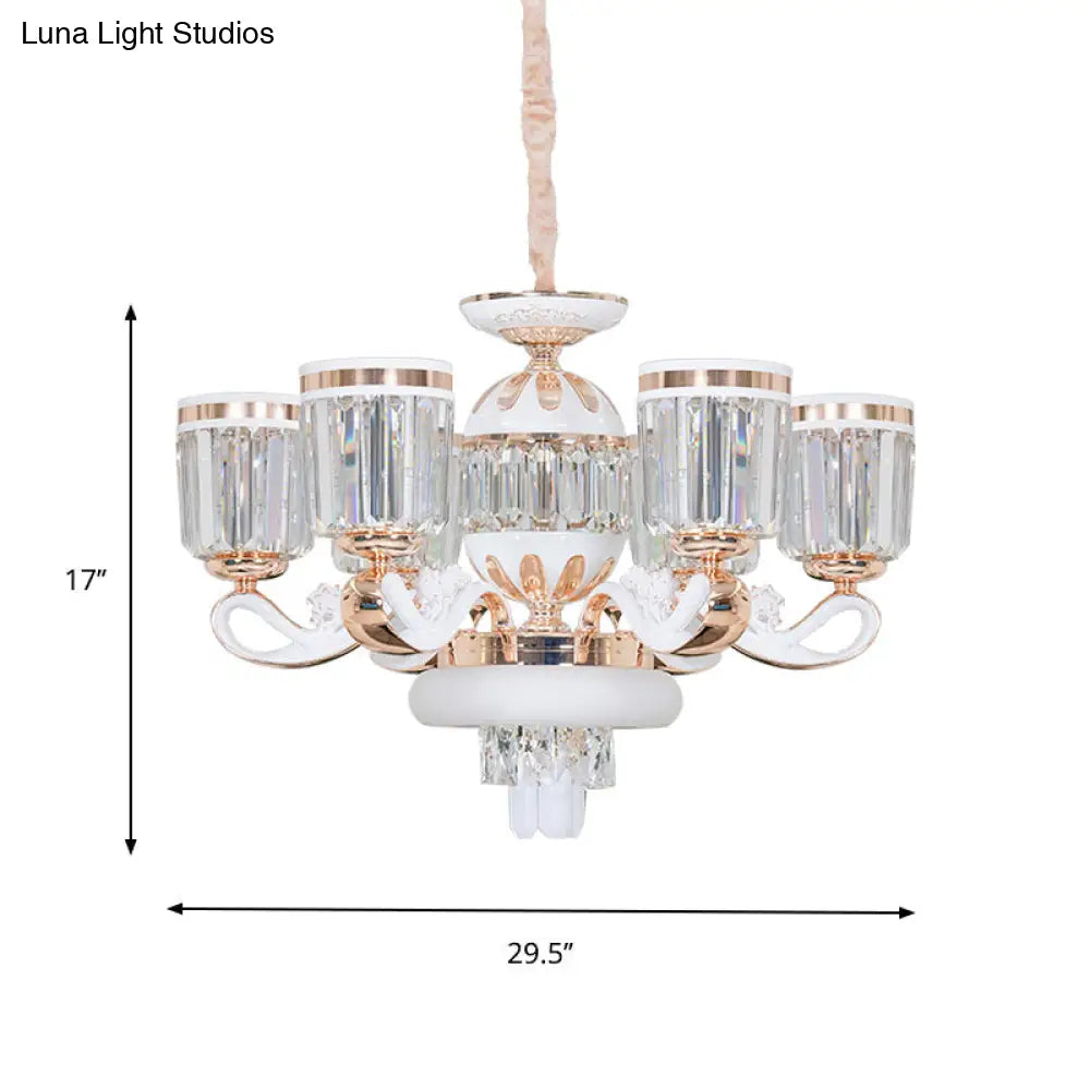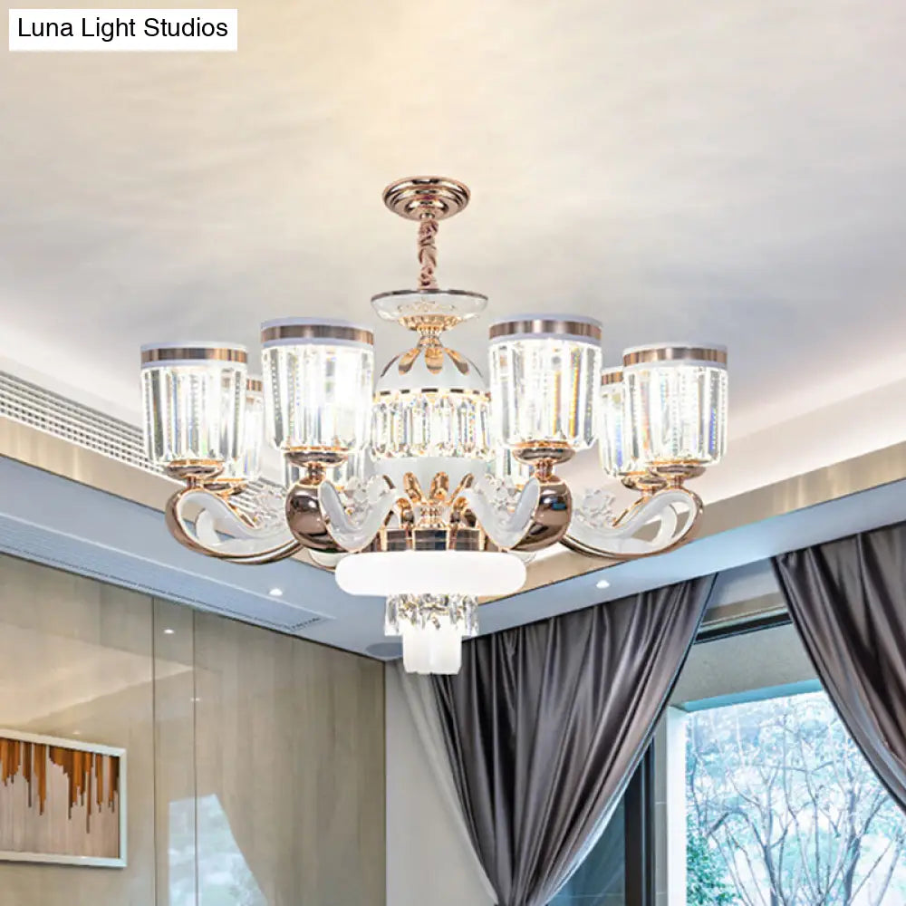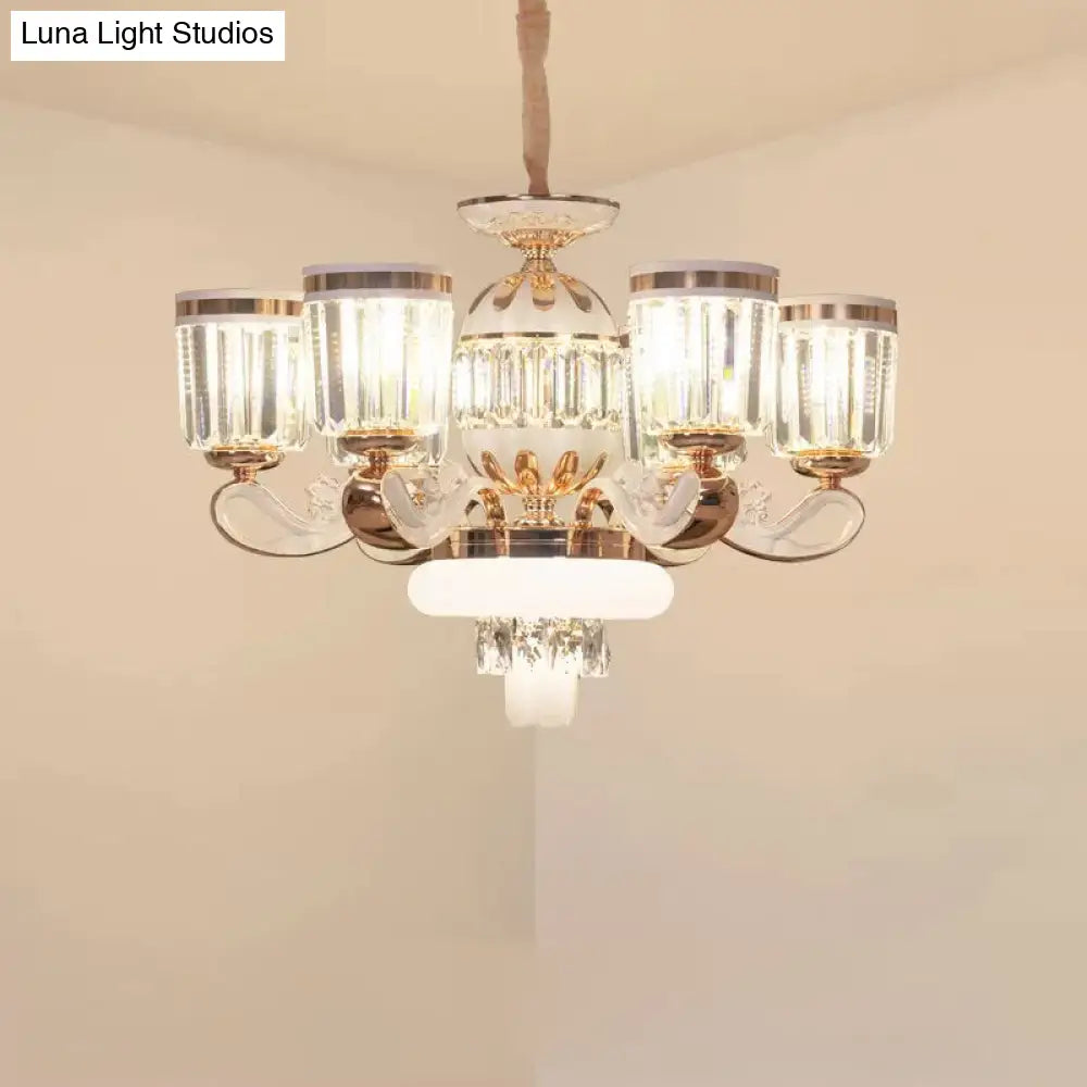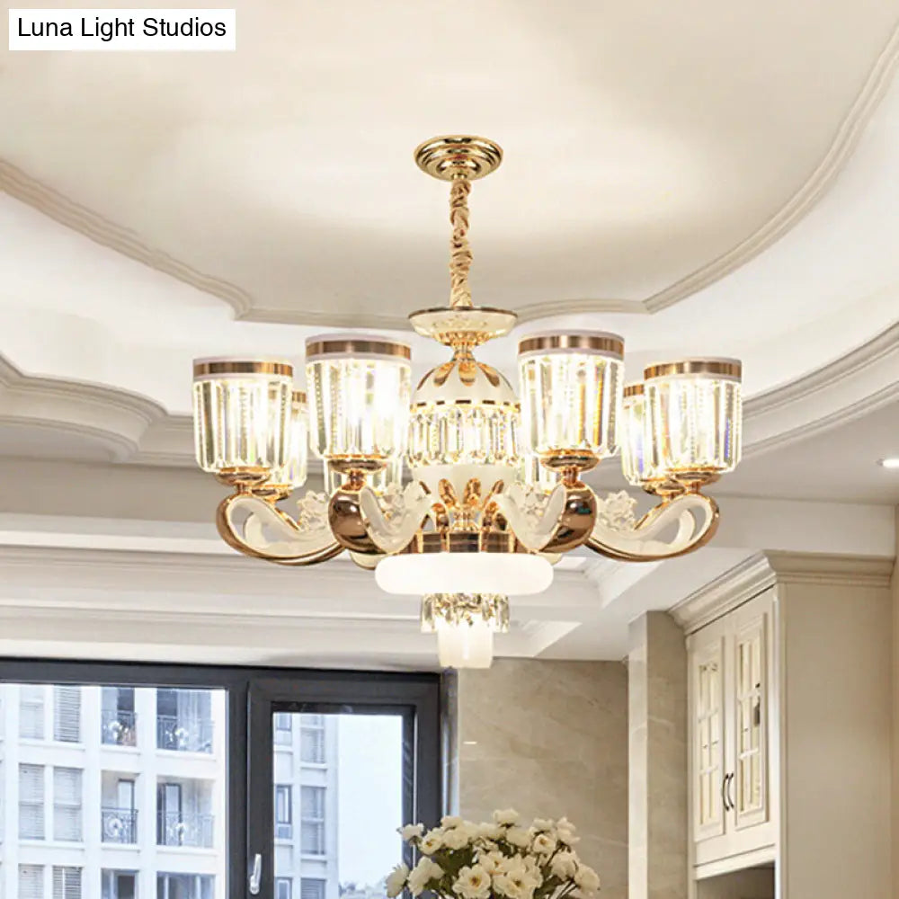 Lámpara de araña colgante moderna con bloque de cristal dorado - Diseño de campana de 6/8 cabezas