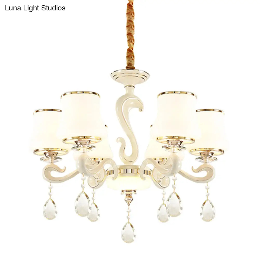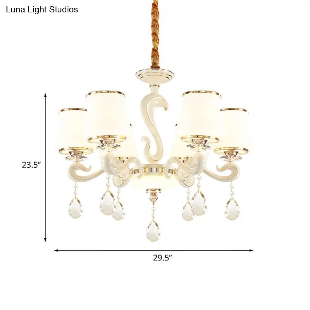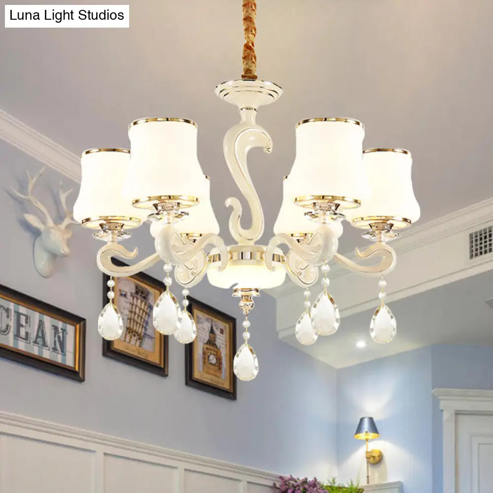 Lámpara de araña moderna de cristal opalino blanco curvo para dormitorio con 6 bombillas