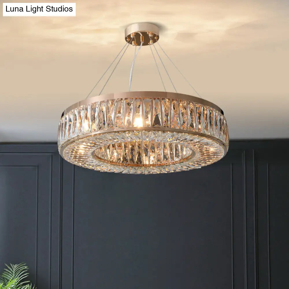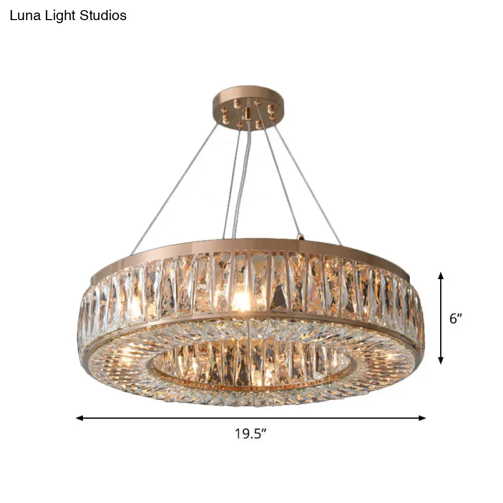 Lámpara de araña contemporánea dorada con pantalla de cristal en forma de anillo - Lámpara colgante de 6 bombillas para dormitorio