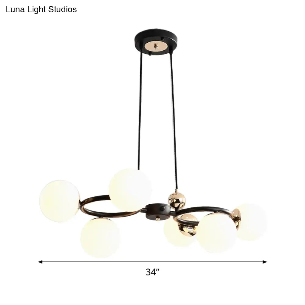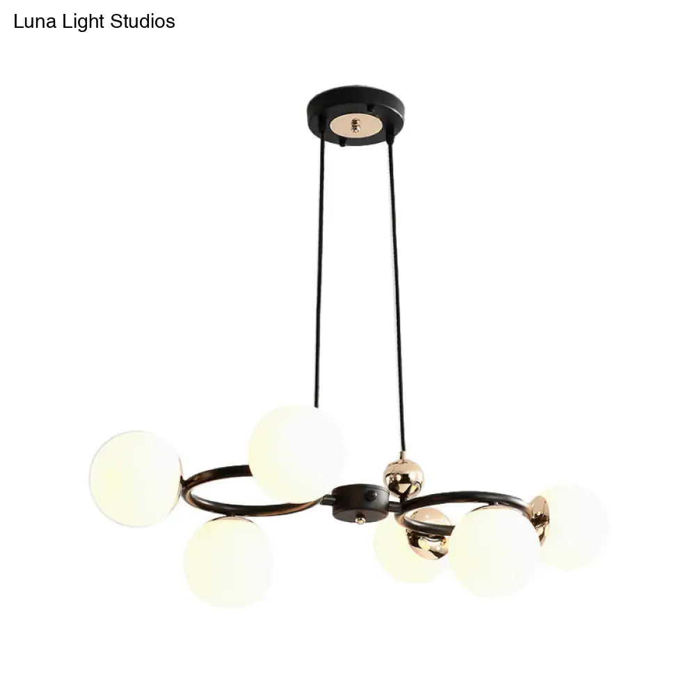 Lámpara de techo colgante moderna de cristal opalino de 6 cabezas - Negra