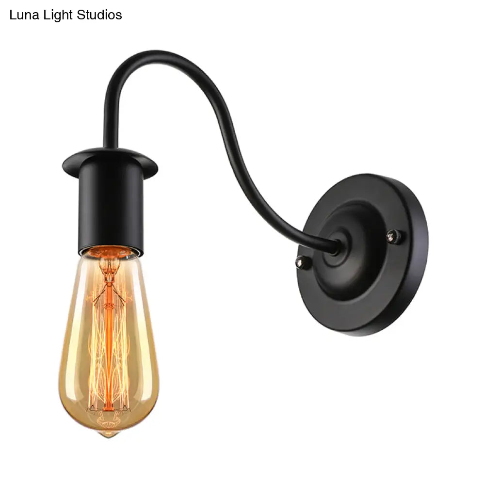 Lámpara de pared vintage de metal con brazo flexible de 7"/11" de diámetro y bombilla desnuda, color negro.