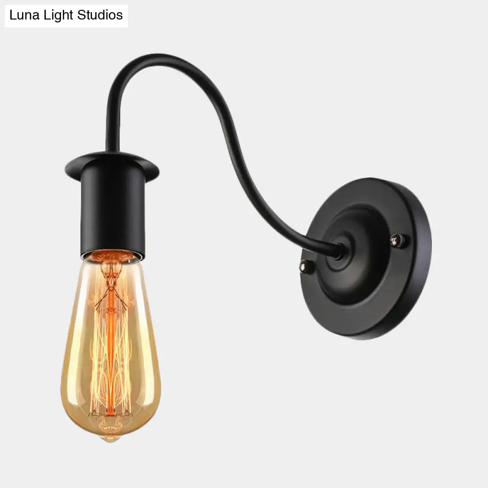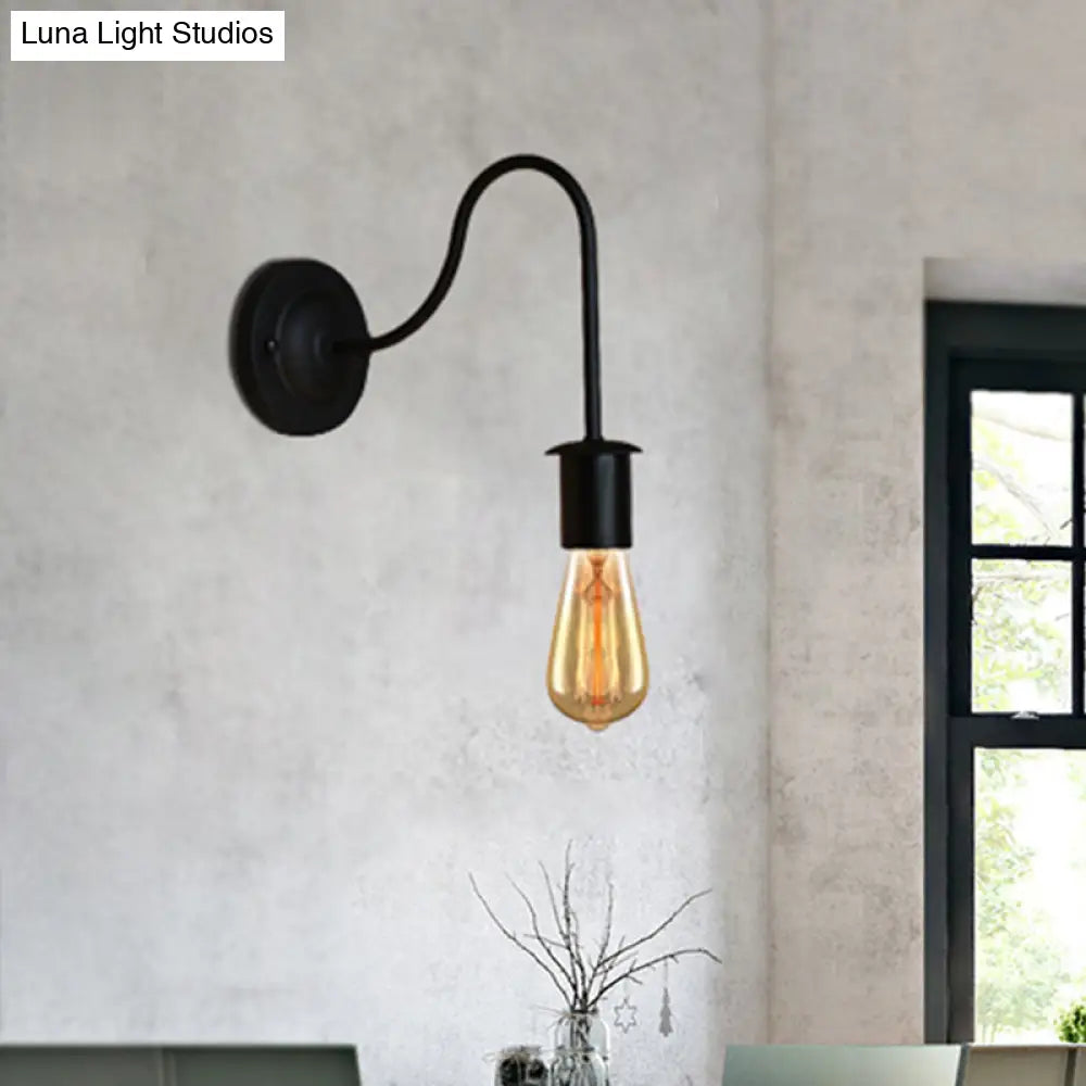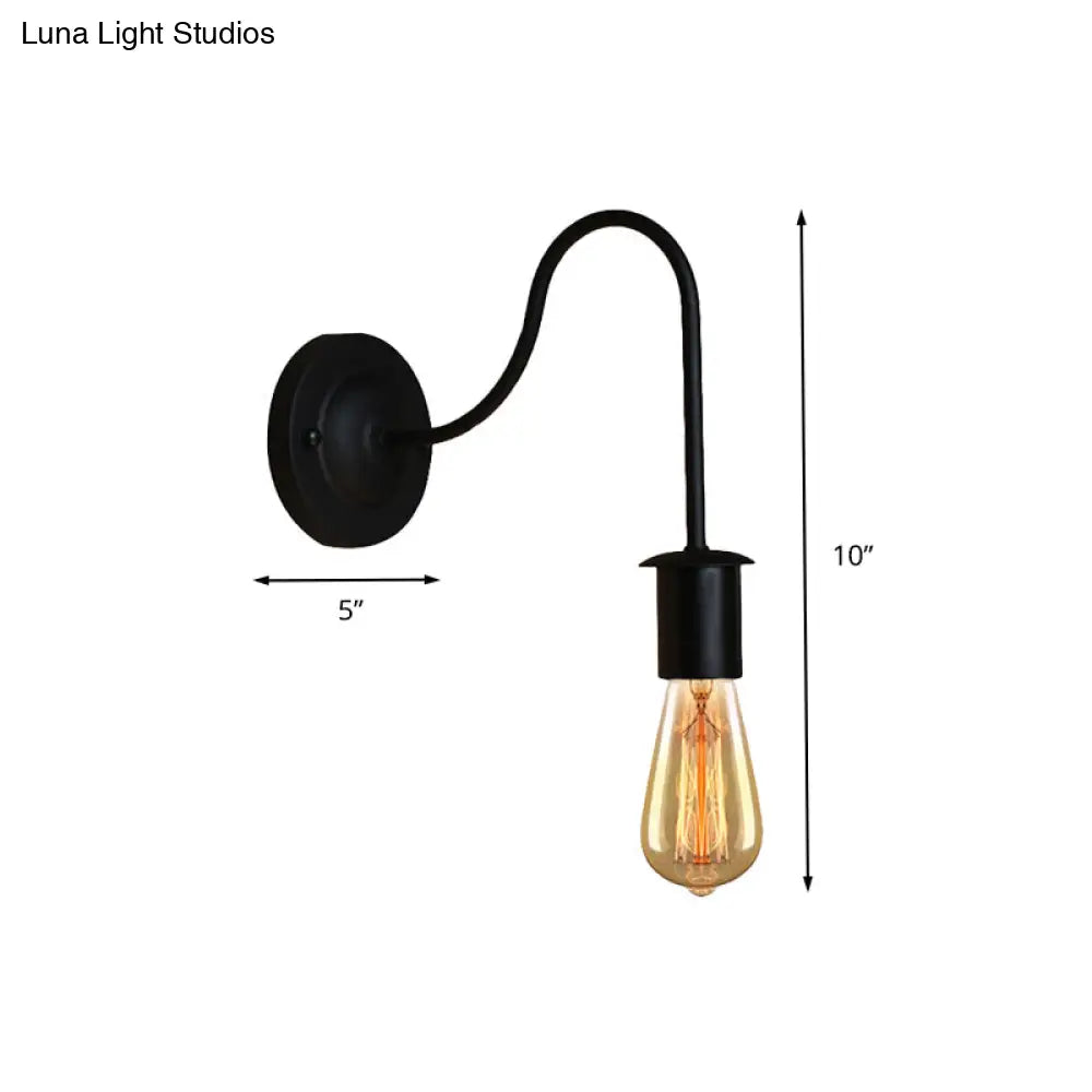 Lámpara de pared vintage de metal con brazo flexible de 7"/11" de diámetro y bombilla desnuda, color negro.