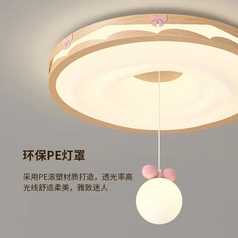 Lámpara de techo colgante redonda DecorBites™ Cream Wind Walnut para dormitorio principal, estilo retro cálido