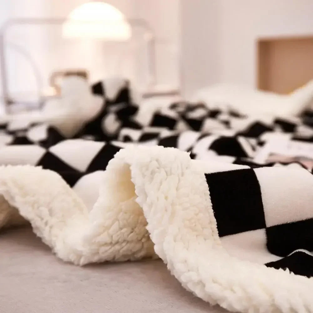 Funda para manta de lana de cordero con estampado de tablero de ajedrez DecorBites™ 2024 - Serie de mantas estampadas premium