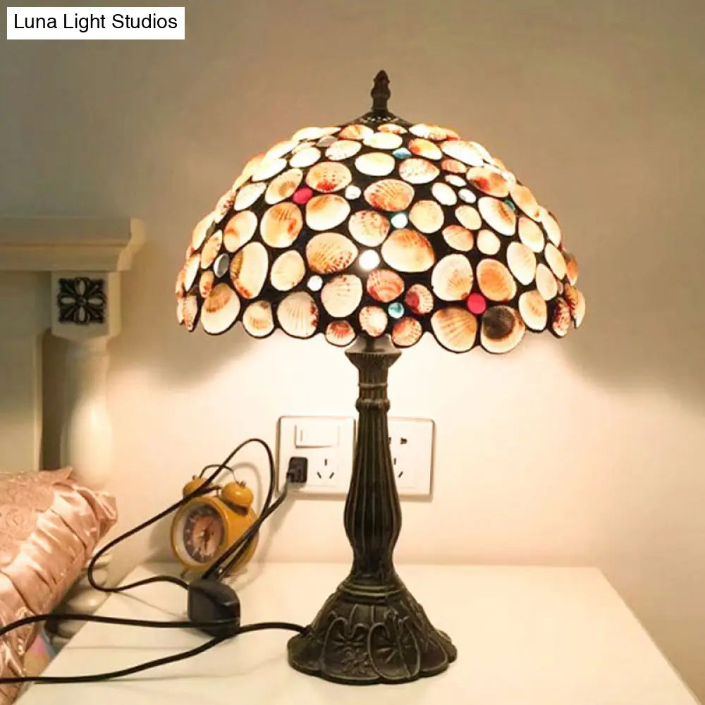 Lámpara de mesilla de noche estilo Tiffany de 8"/12" de ancho, con forma de concha de bronce y diseño en forma de cuenco para dormitorio