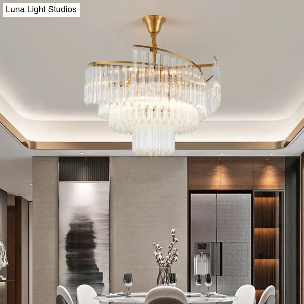Lámpara de araña dorada de cristal escalonada: Lámpara colgante LED de 8 bombillas para sala de estar