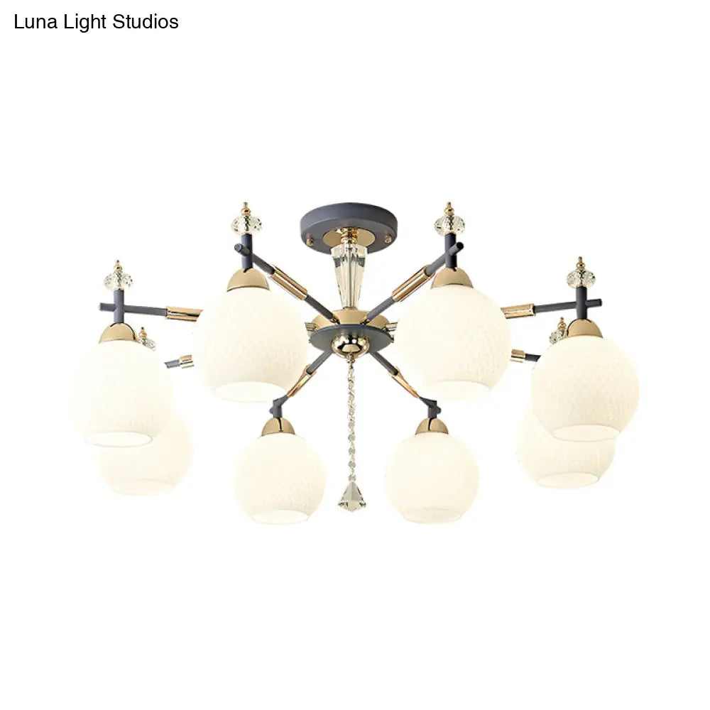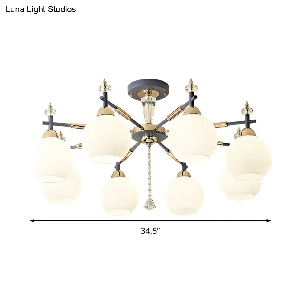 Lámpara de techo colgante moderna gris con pantallas de cristal opalino - Lámpara de salón con 8 bombillas