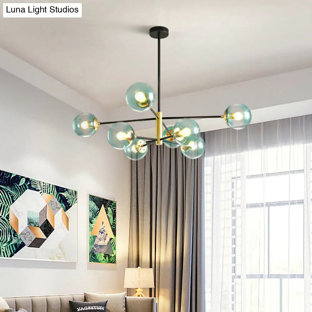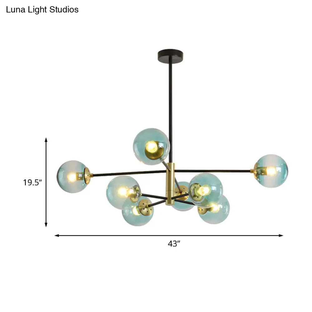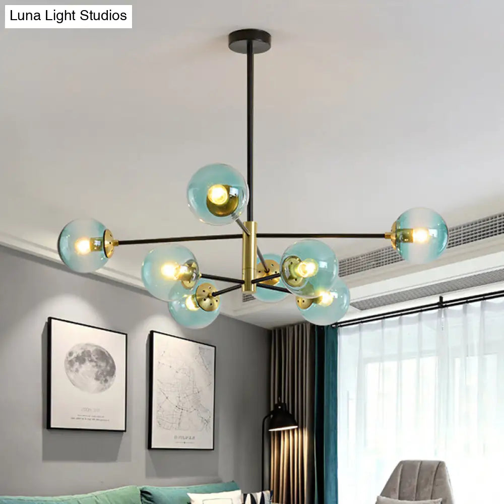 Lámpara de araña moderna de latón con pantallas de cristal azul - Lámpara colgante de 8 luces