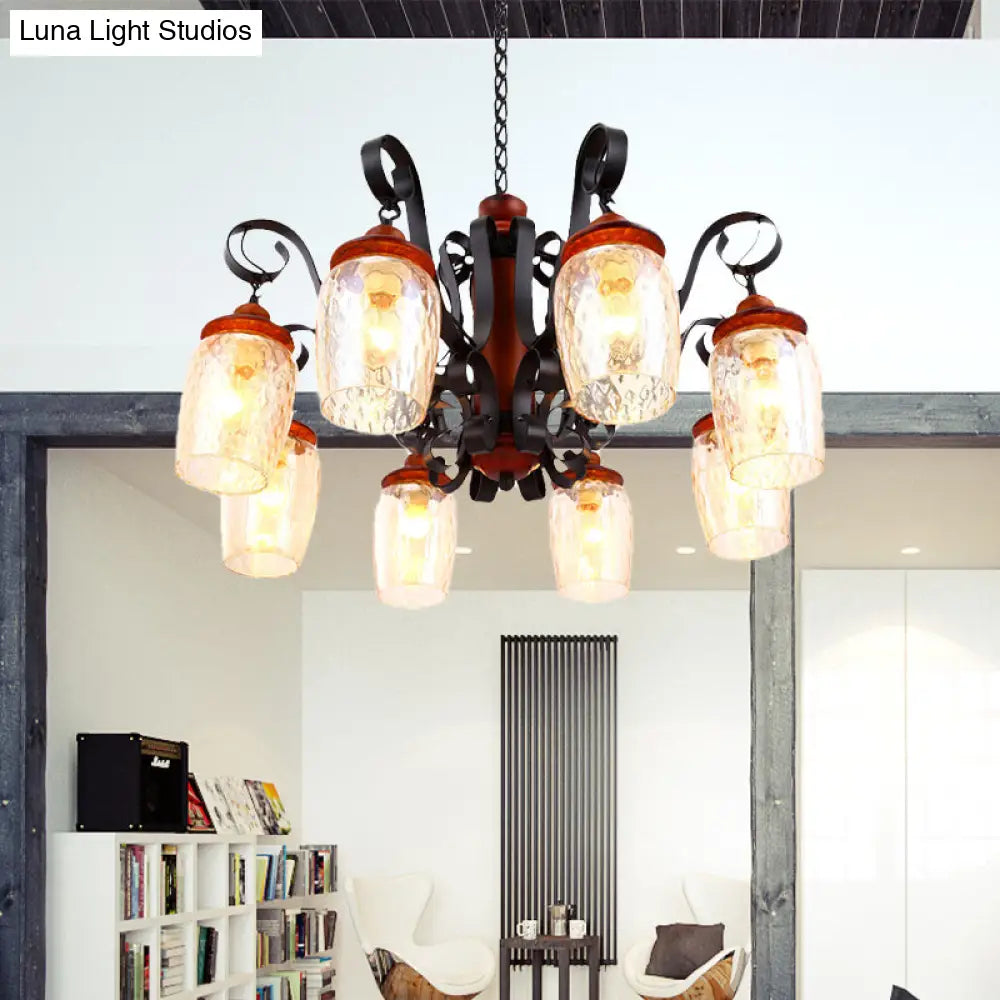 Lámpara de techo colgante de cristal negro envejecido de 8 luces con brazo curvo para salón.