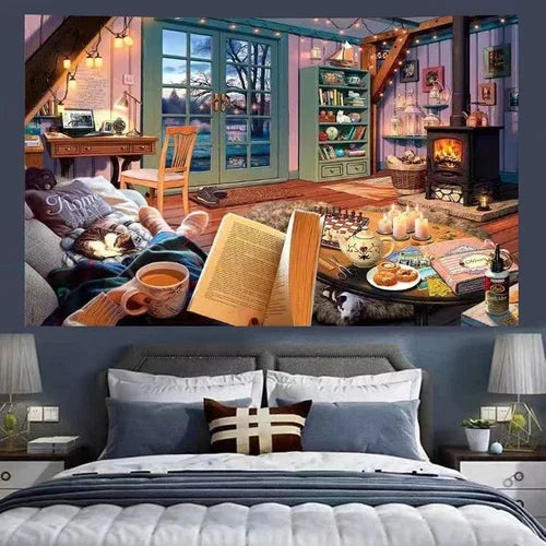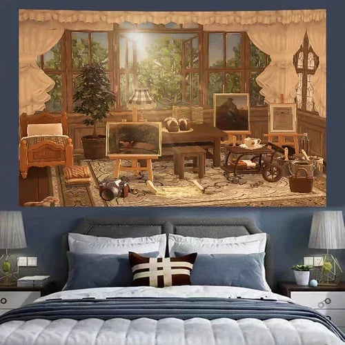 Realza tu espacio vital con el tapiz de pared Decorbites Cozy Retro Cottage y transforma tu habitación en un acogedor refugio que refleje tu estilo y personalidad únicos.