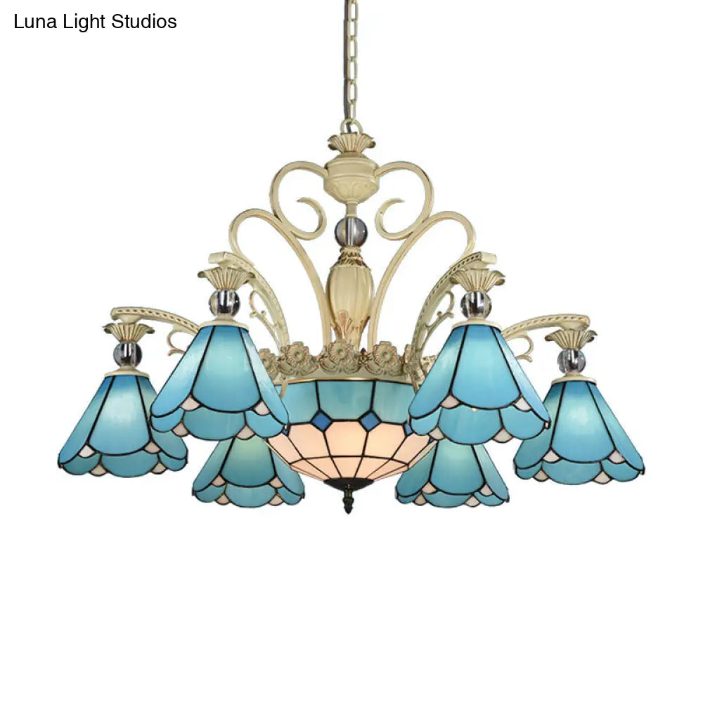 Lámpara de araña cónica de cristal azul para cocina con luces del 11-S