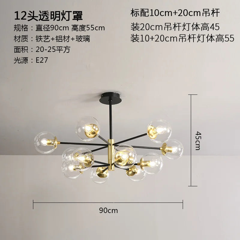 Elaborada con materiales de alta calidad y diseñada para un máximo impacto visual, esta lámpara de araña es una pieza que realmente destaca. Su pantalla de cristal transparente dirige la luz de forma excepcional, creando un ambiente cálido y acogedor. El acabado cromado pulido le aporta un toque contemporáneo, convirtiéndola en la elección perfecta para quienes aprecian el buen diseño.