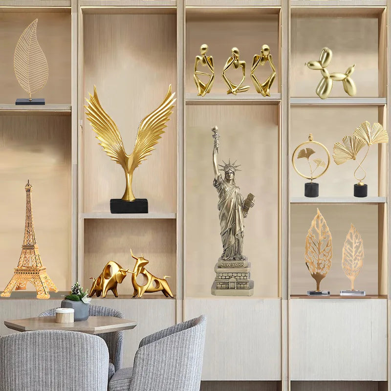 Estatua abstracta de resina dorada, hecha a mano, para decoración de sala de estar o escritorio de oficina - DecorBites™