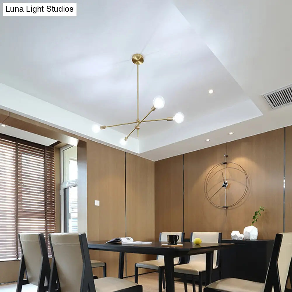 Lámpara de araña dorada ajustable contemporánea con pantalla de globo de cristal transparente - Iluminación colgante de 4 bombillas