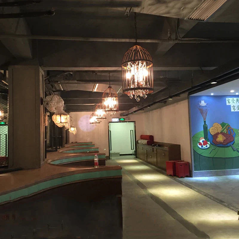 Lámpara de techo DecorBites™ con forma de jaula de pájaro de cristal: elegante luz para comedor y dormitorio.