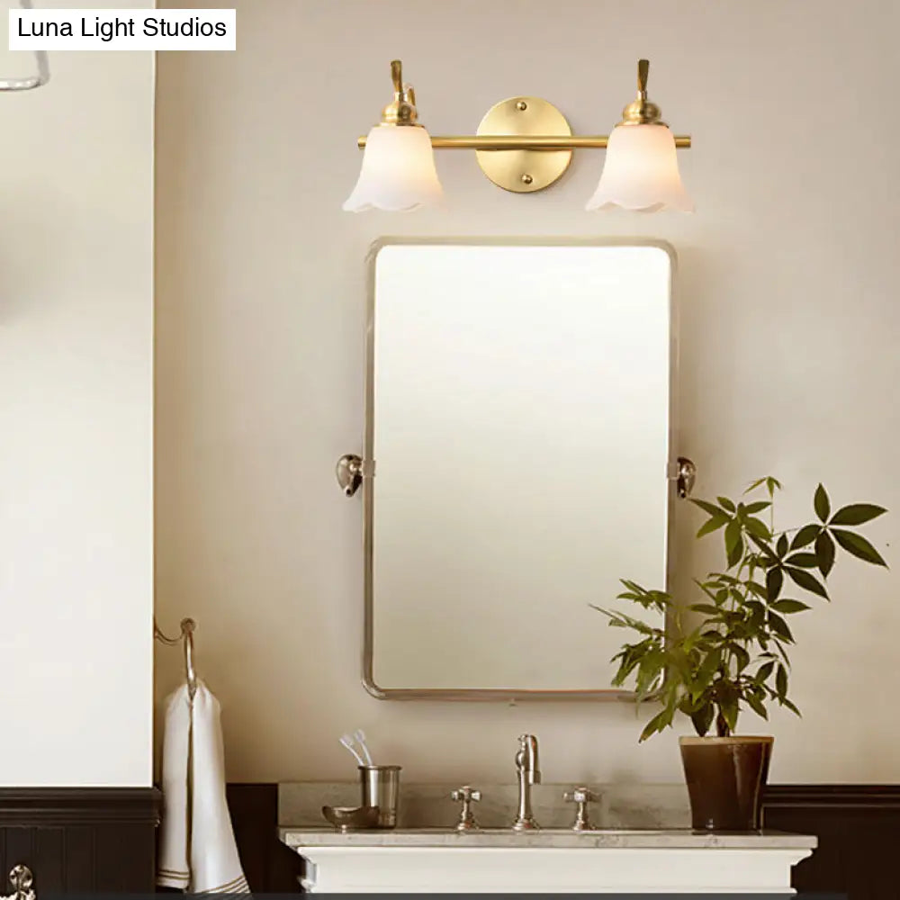 Aplique de pared American Brass con cristal esmerilado para iluminación interior descendente