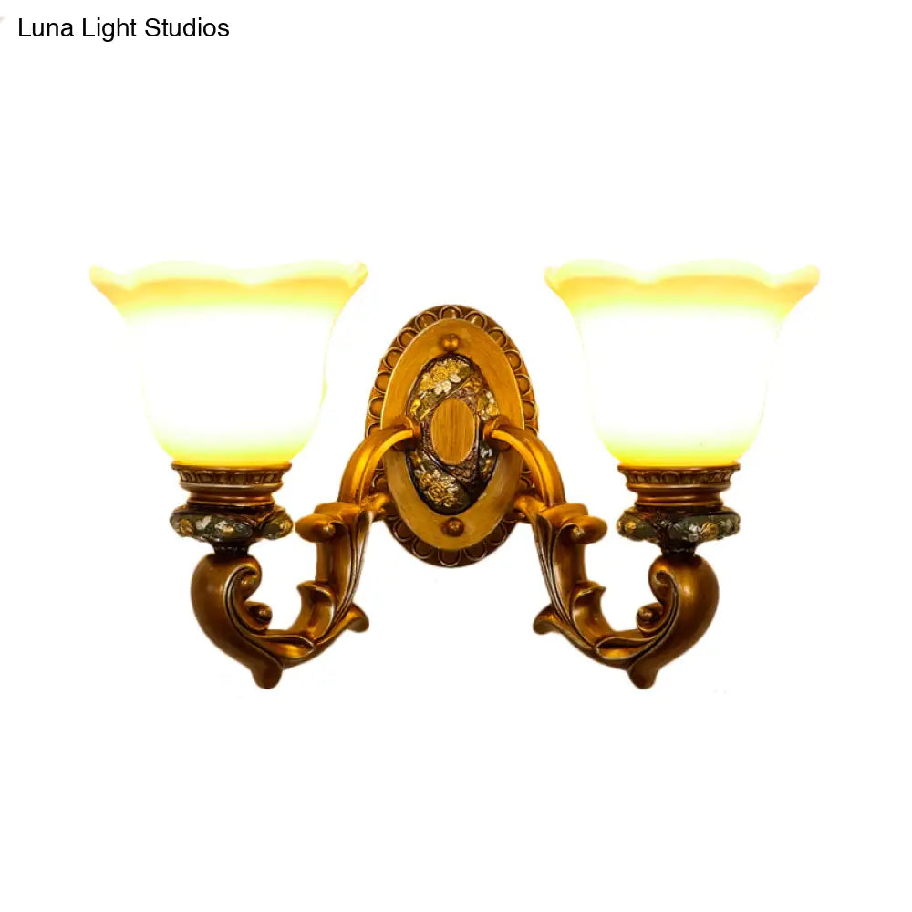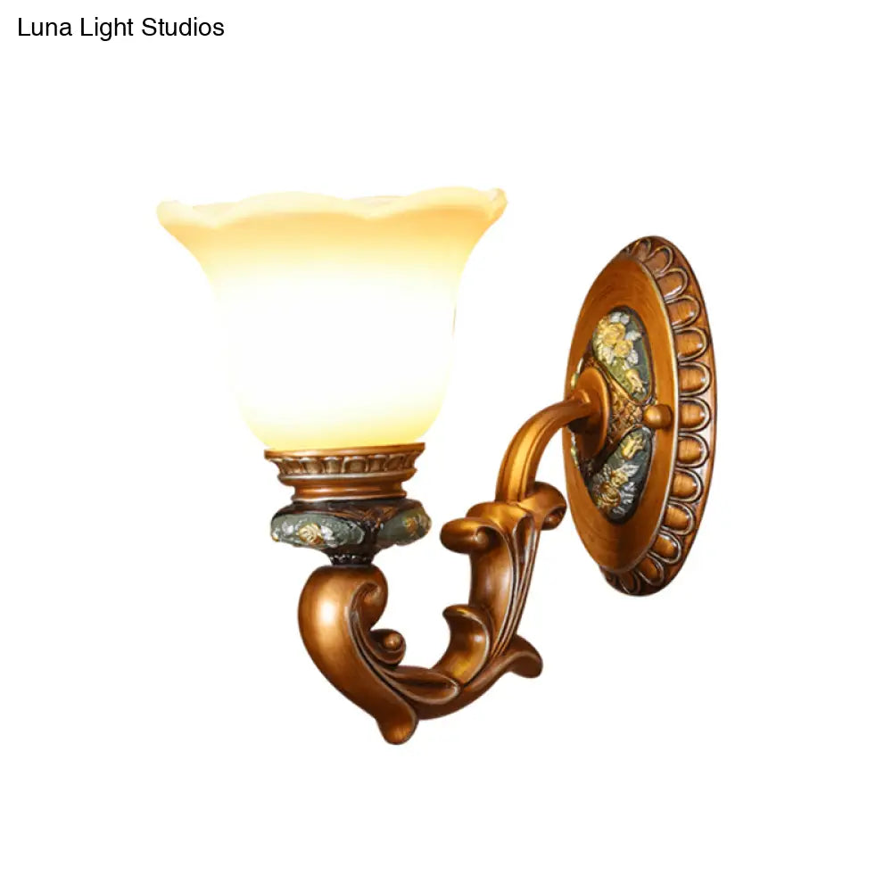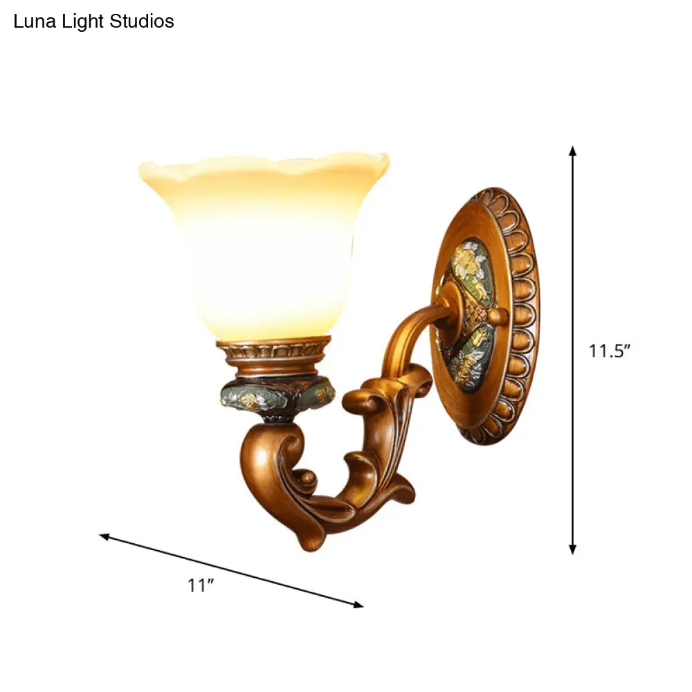 Lámpara de pared antigua con pantalla de flor - Aplique de cristal para dormitorio