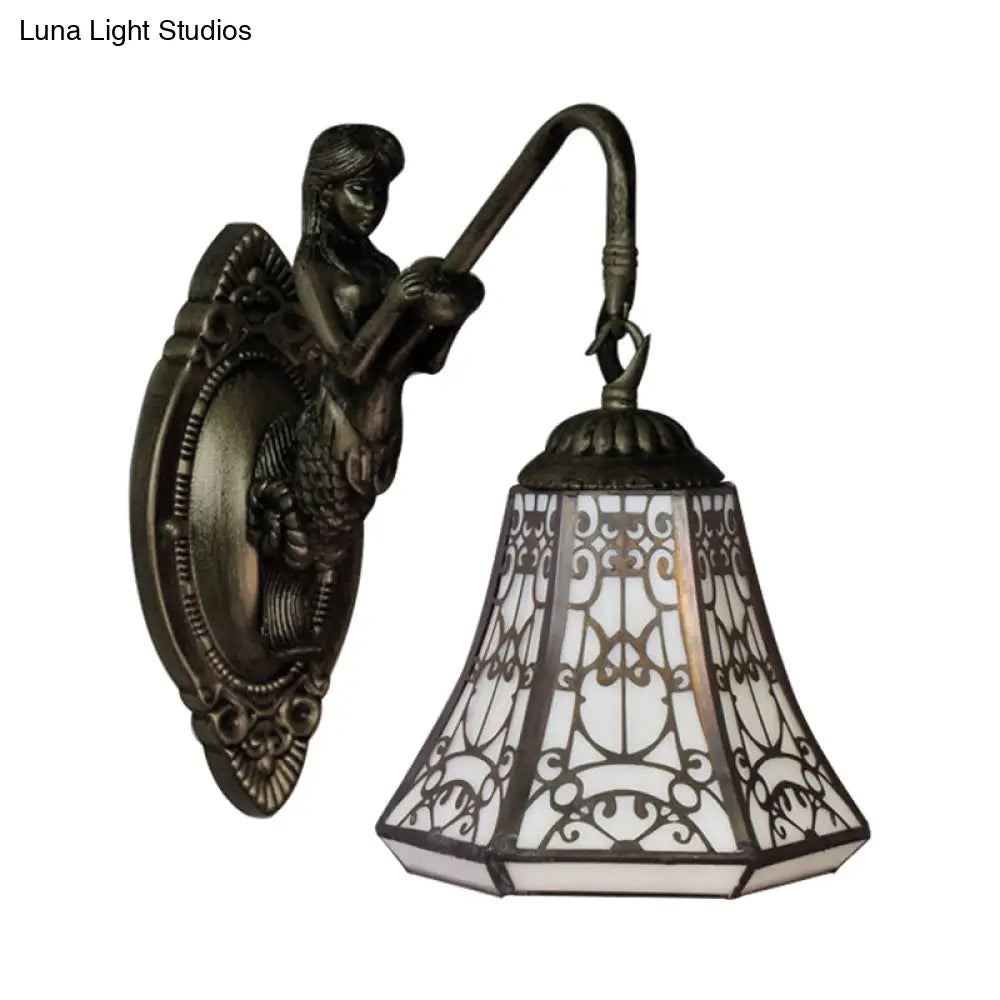 Aplique de pared antiguo de bronce Tiffany con cristal blanco