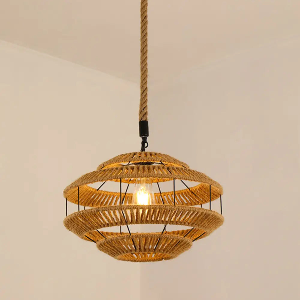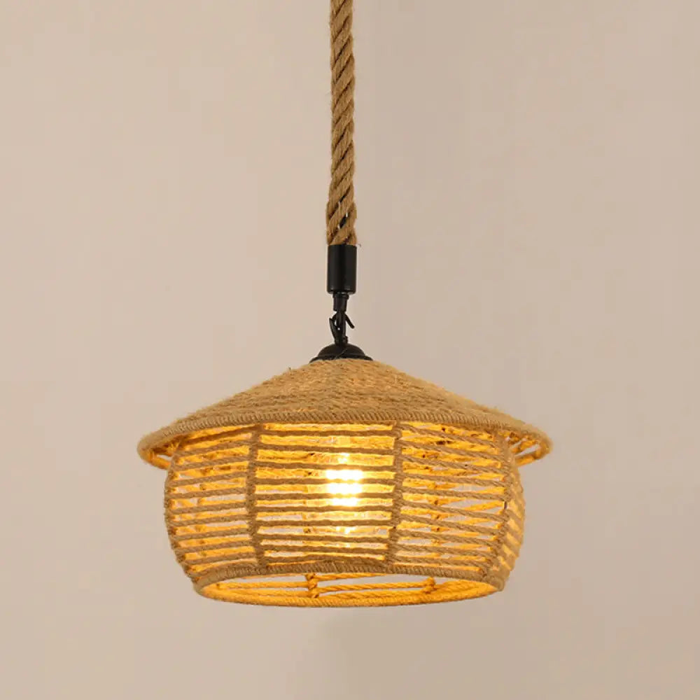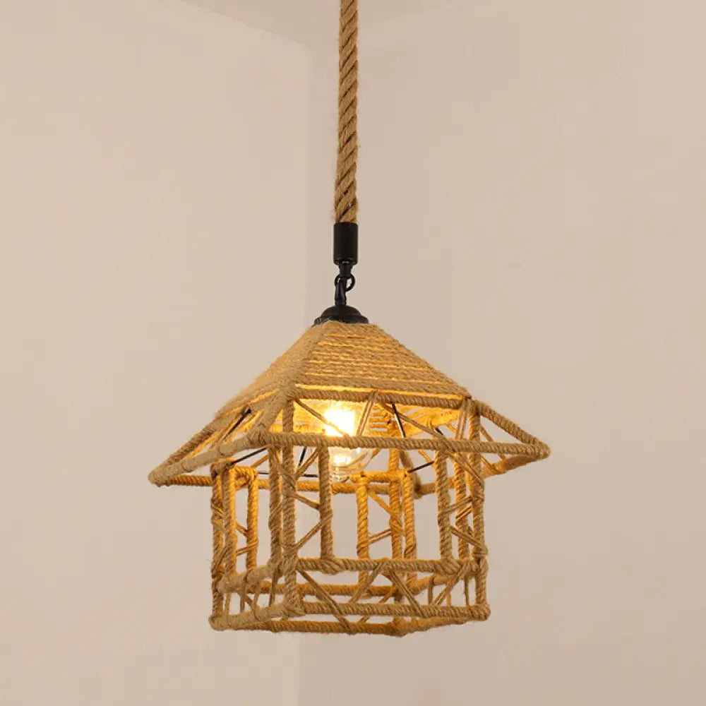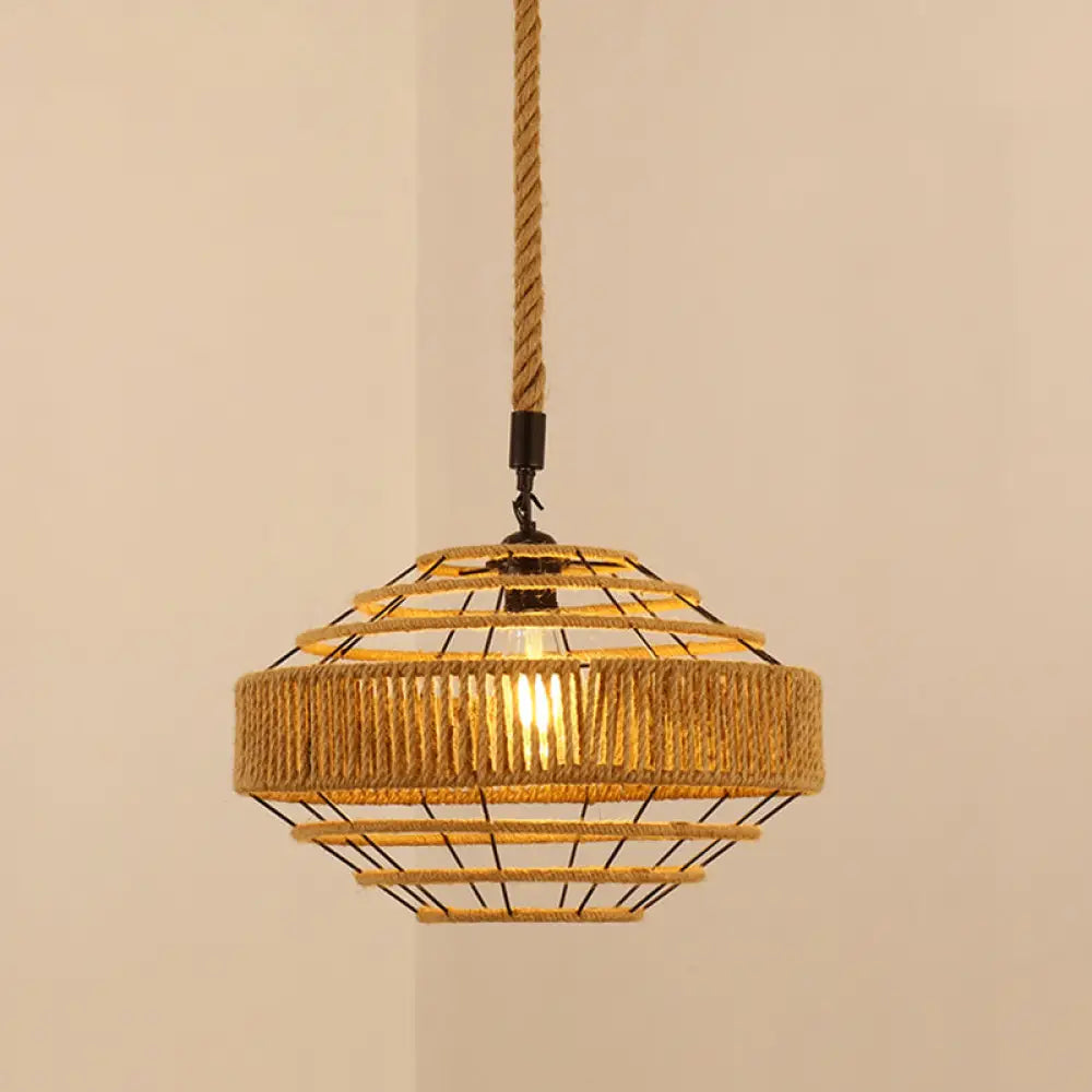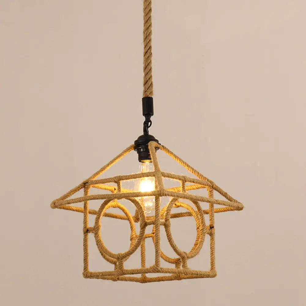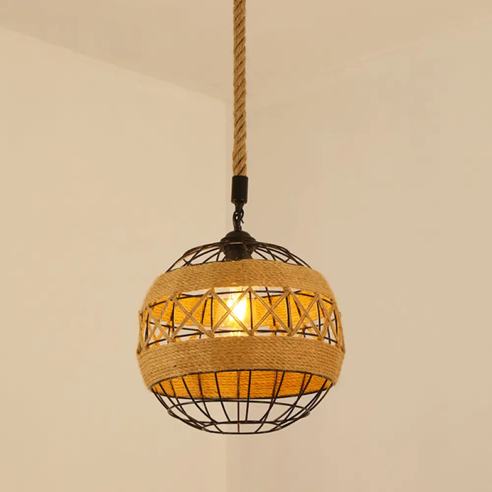 Lámpara colgante antigua enjaulada con cuerda de cáñamo - Marrón, 1 luz, para restaurantes