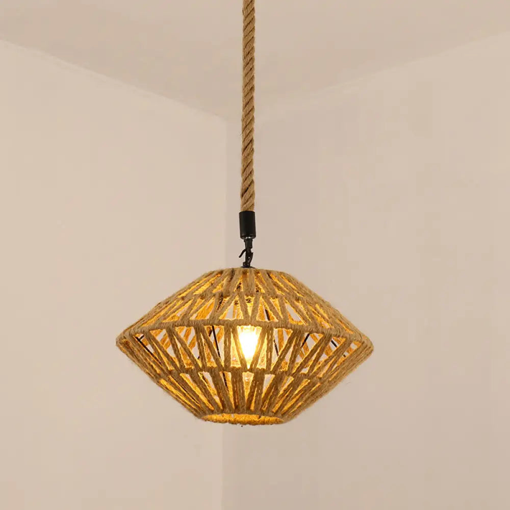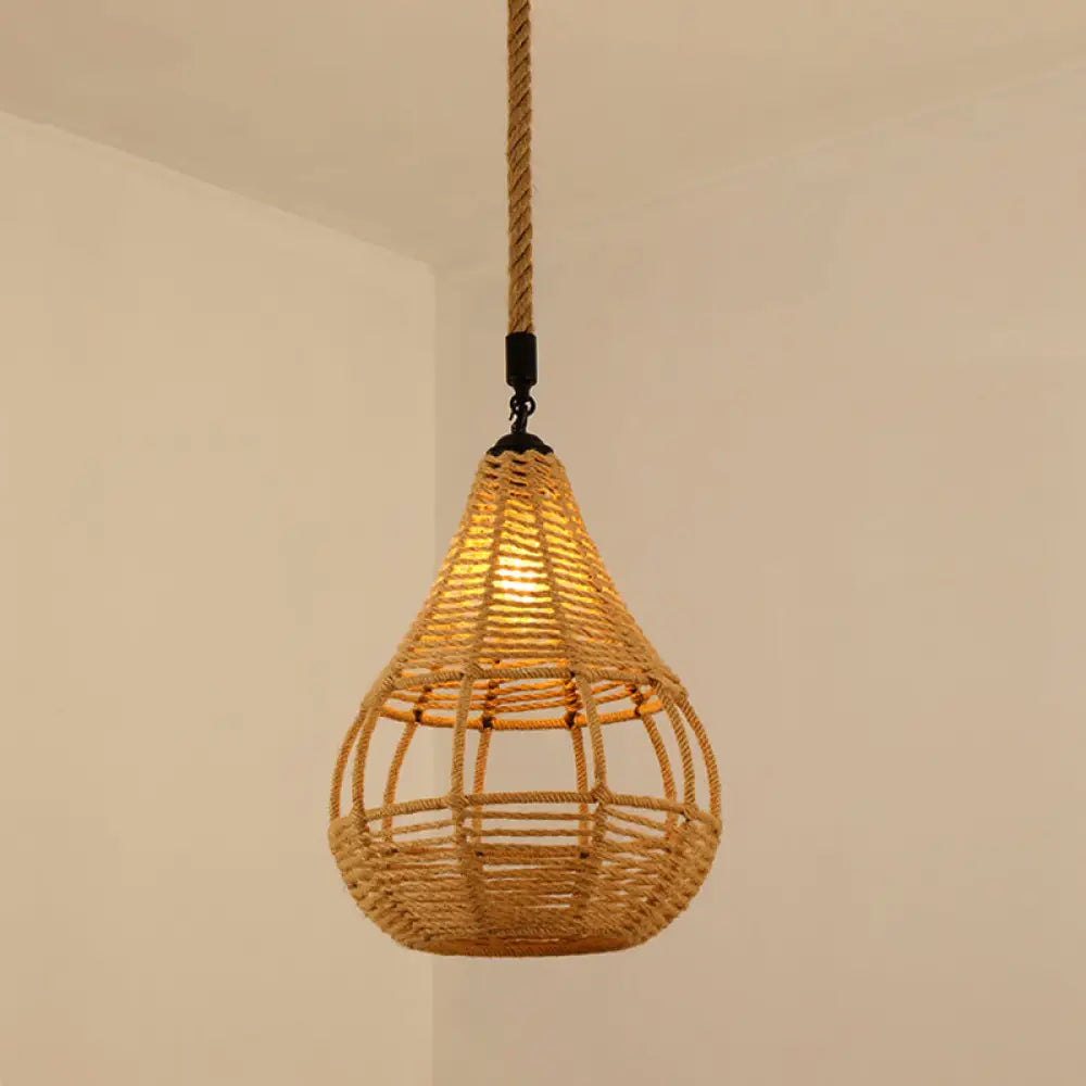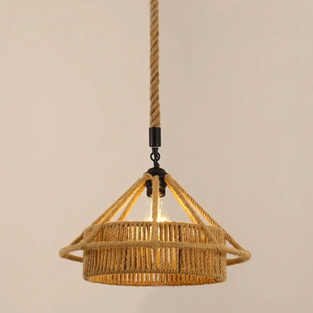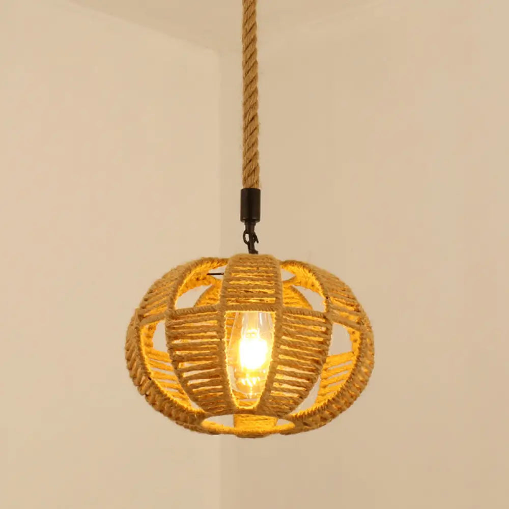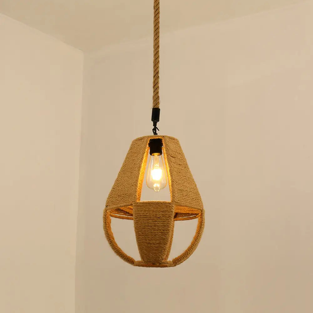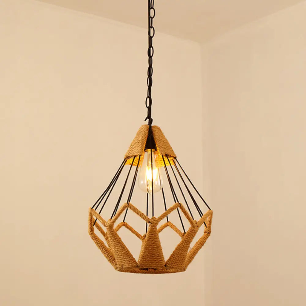 Lámpara colgante antigua enjaulada con cuerda de cáñamo - Marrón, 1 luz, para restaurantes