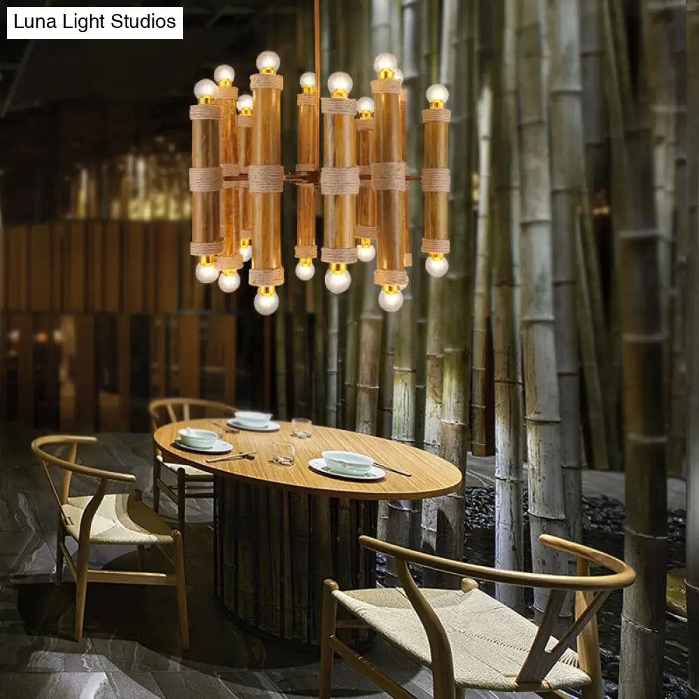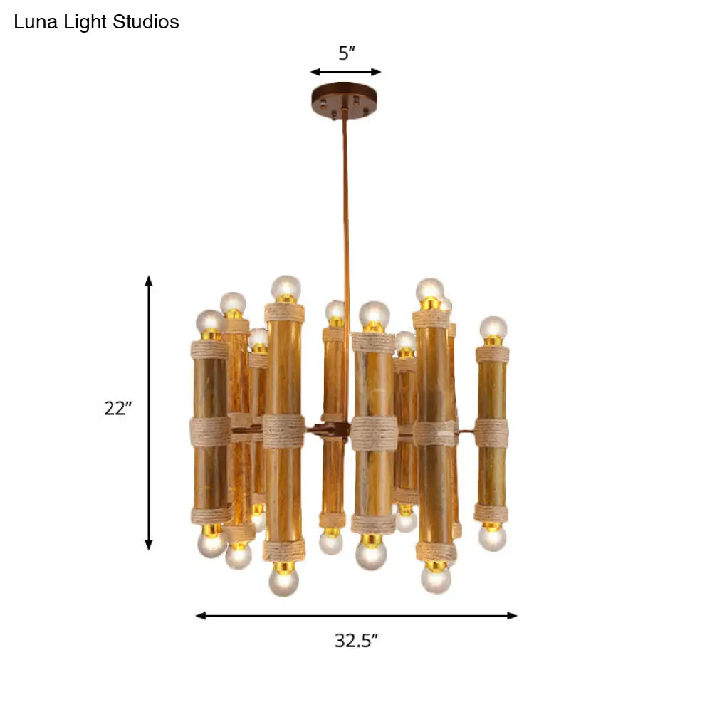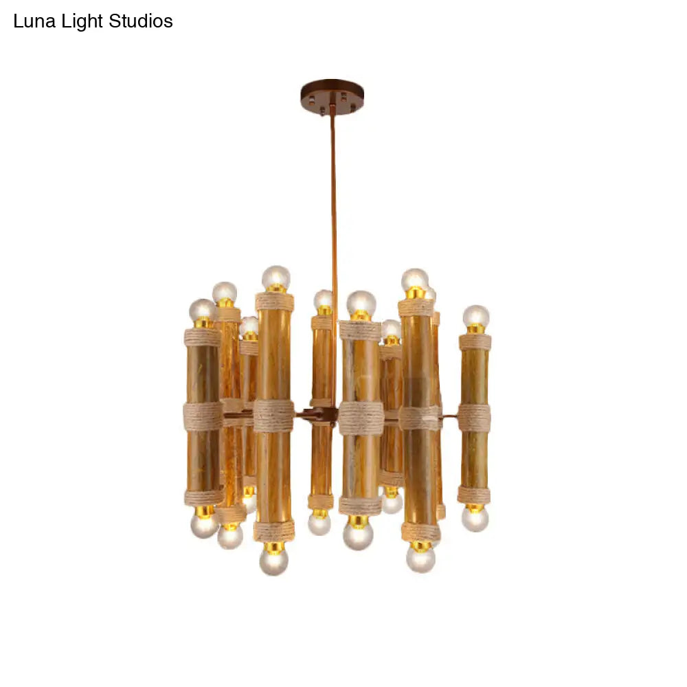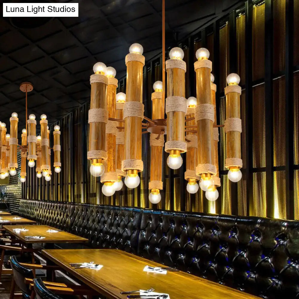 Lámparas de araña de bambú y latón antiguo: Lámparas colgantes con pantalla tubular de varias luces para sala de estar