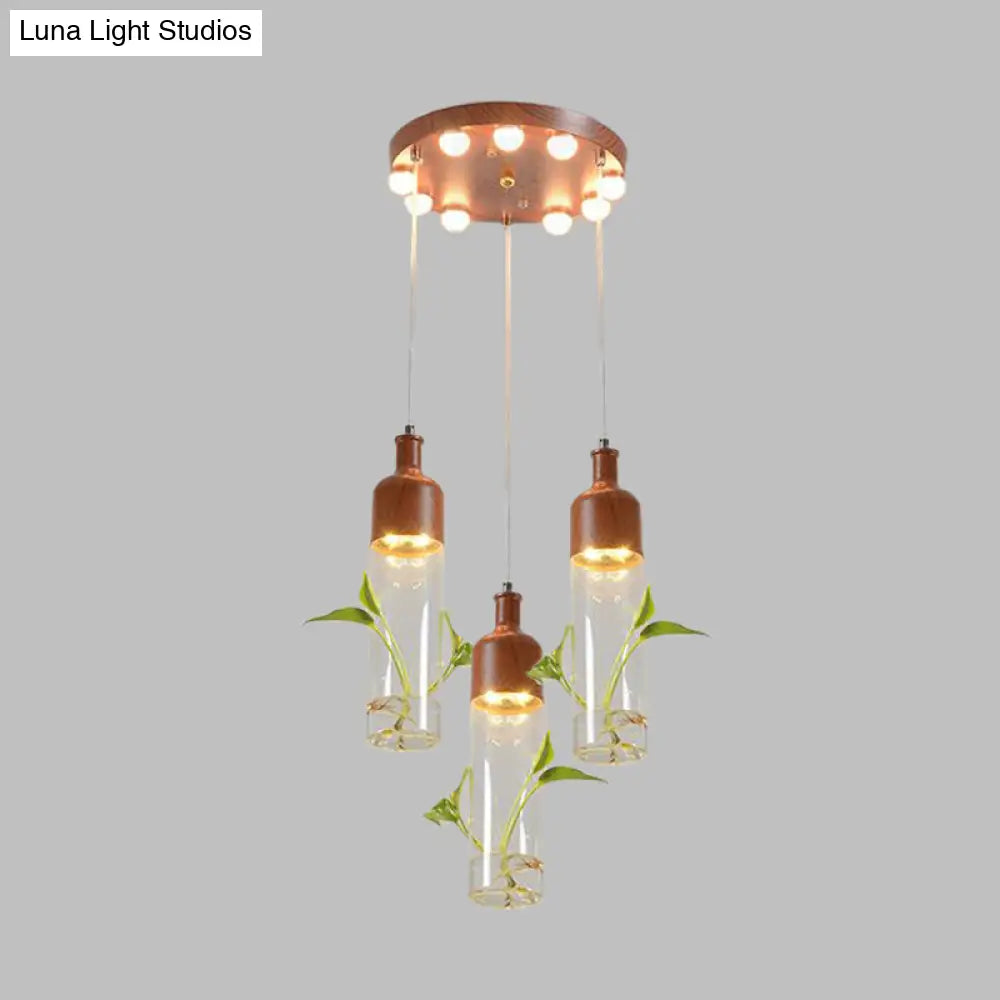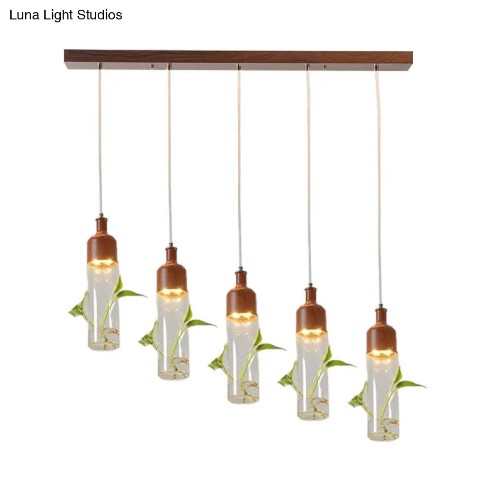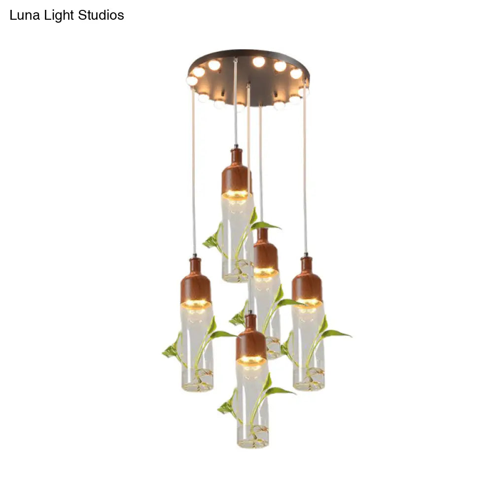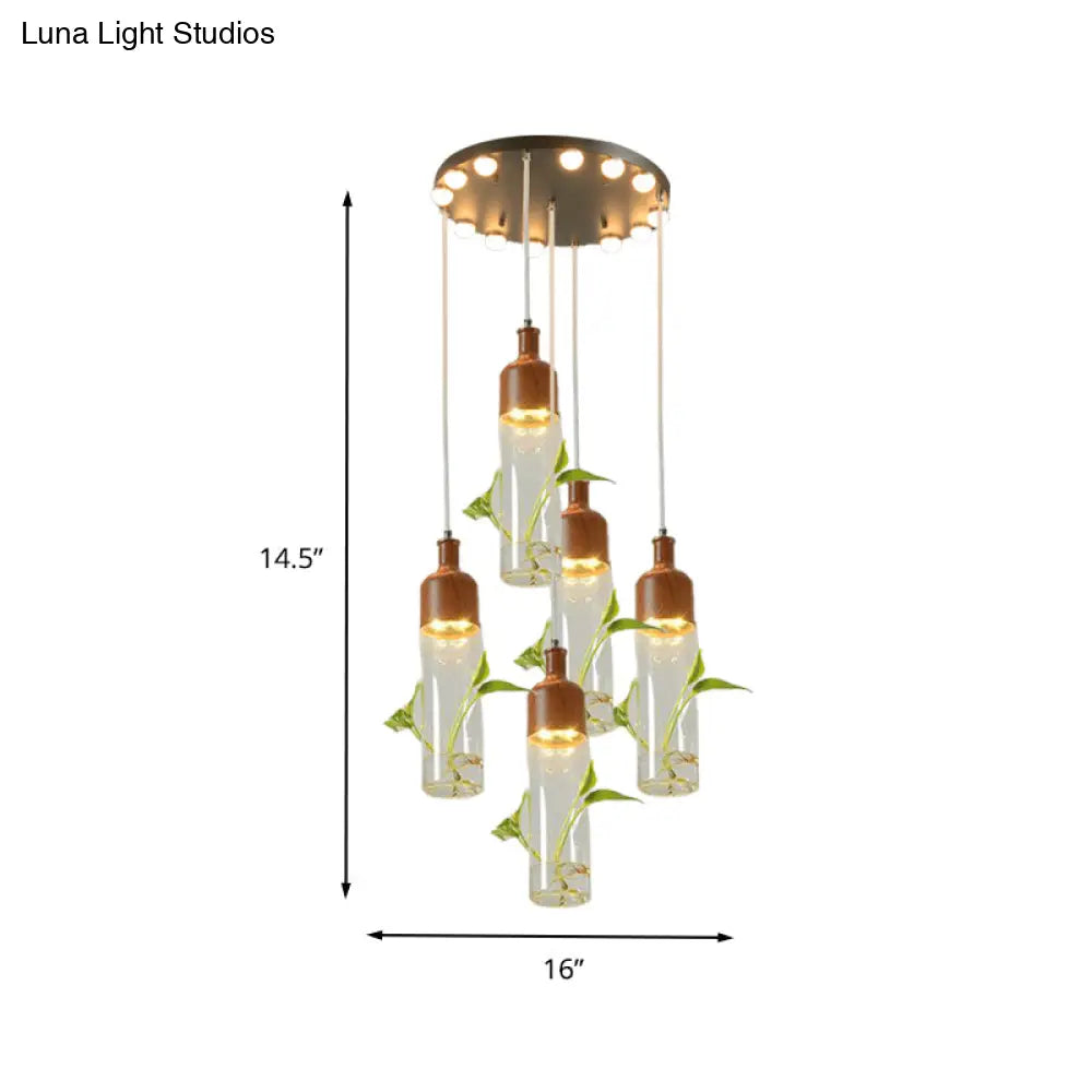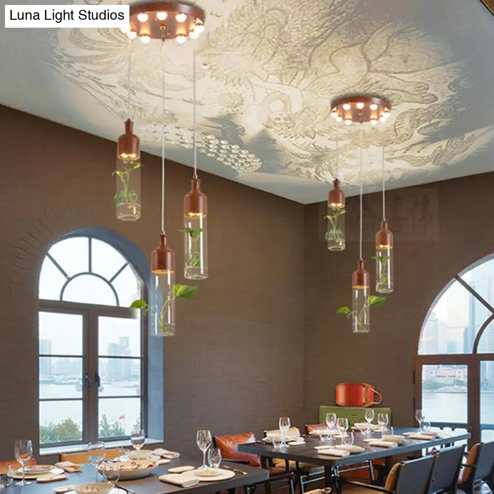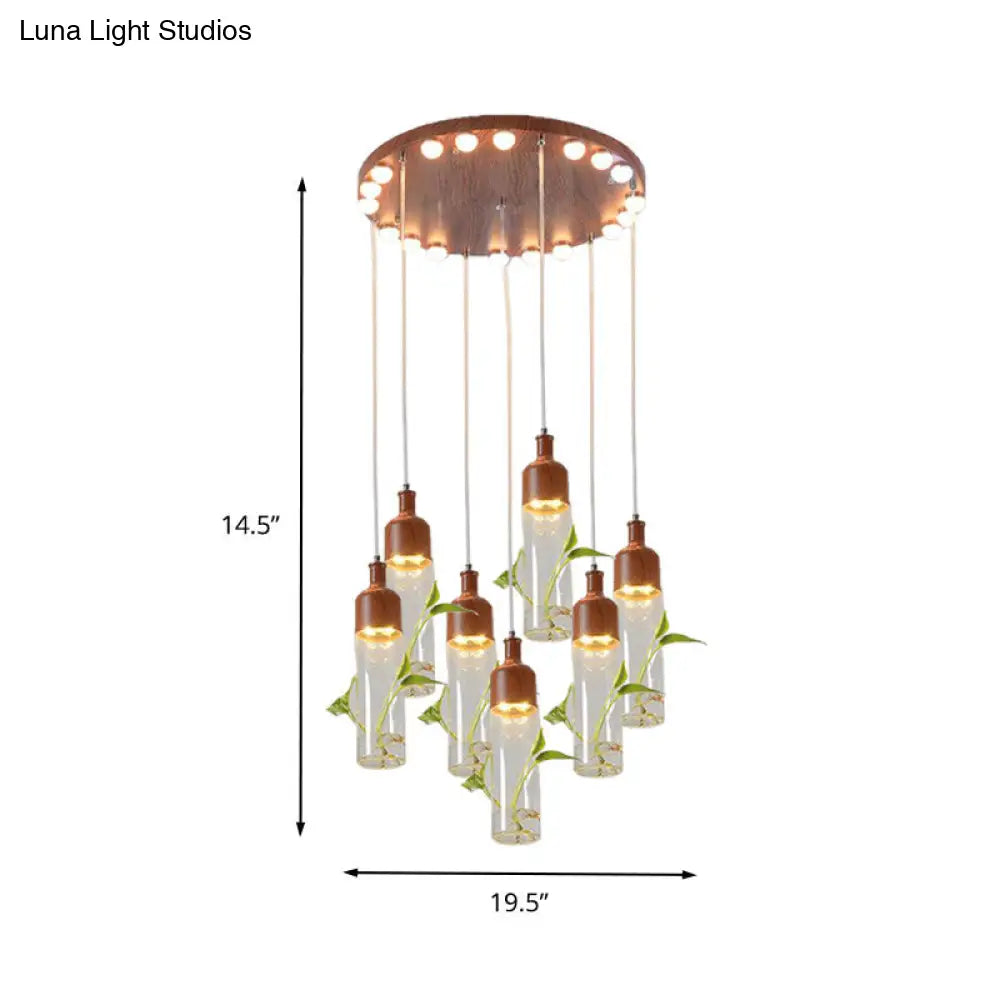 Lámpara de techo colgante con forma de racimo de botellas de vino antiguas - LED metálico con múltiples bombillas, acabado marrón