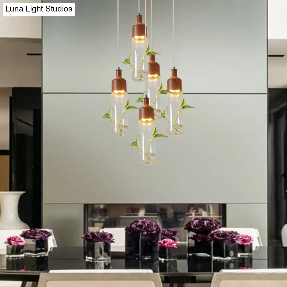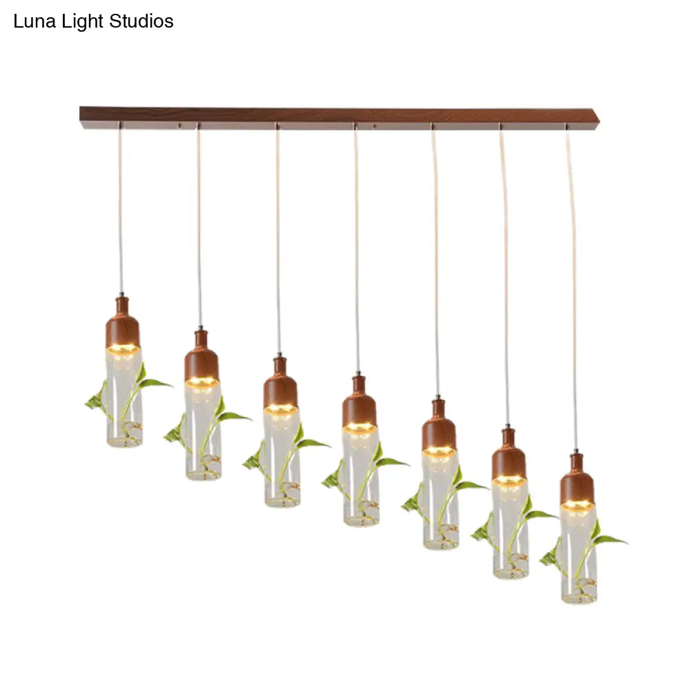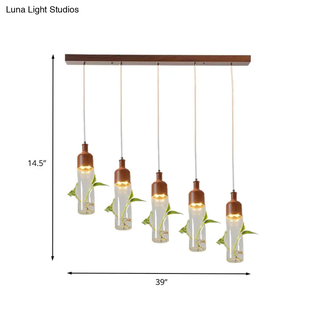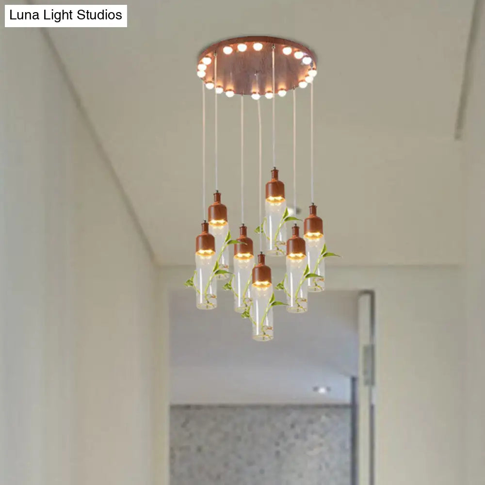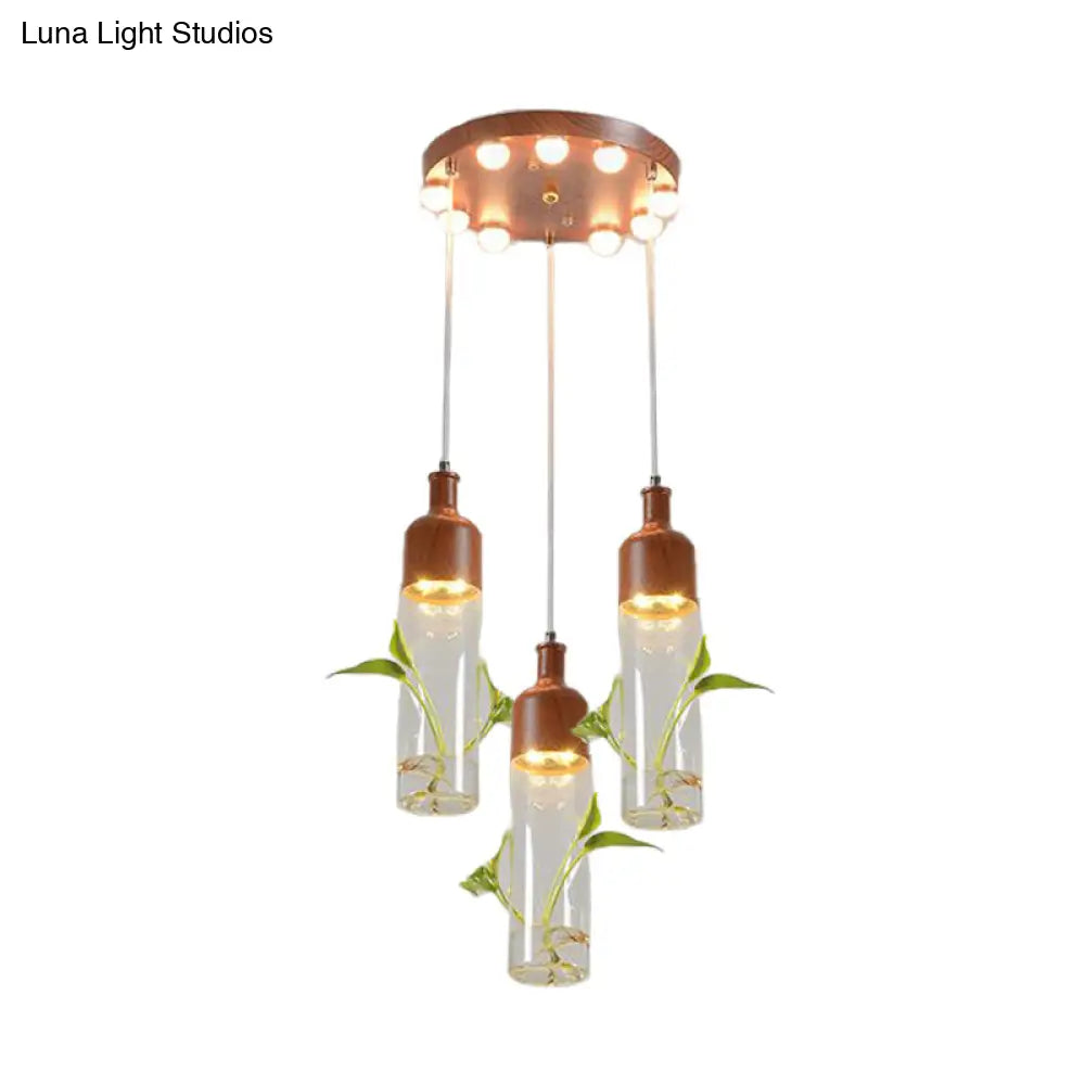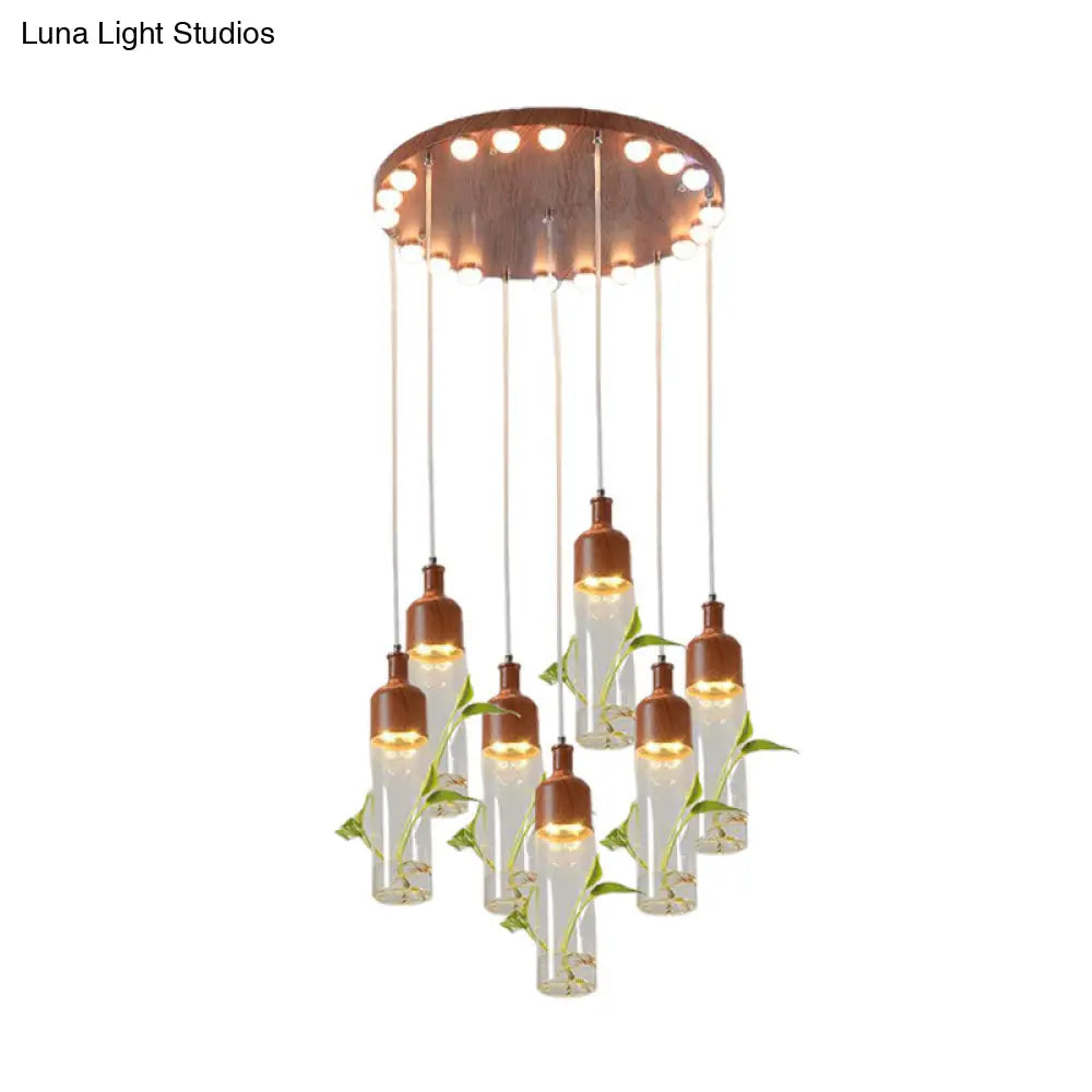 Lámpara de techo colgante con forma de racimo de botellas de vino antiguas - LED metálico con múltiples bombillas, acabado marrón