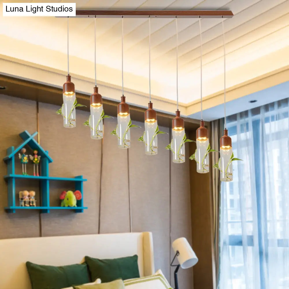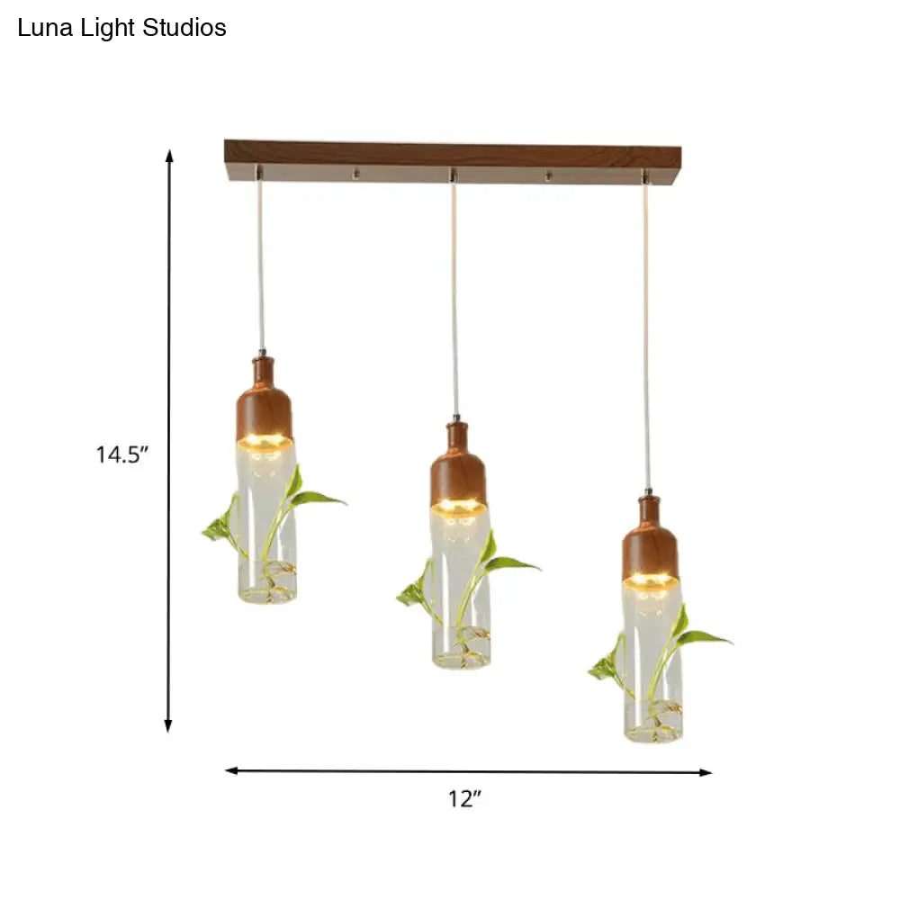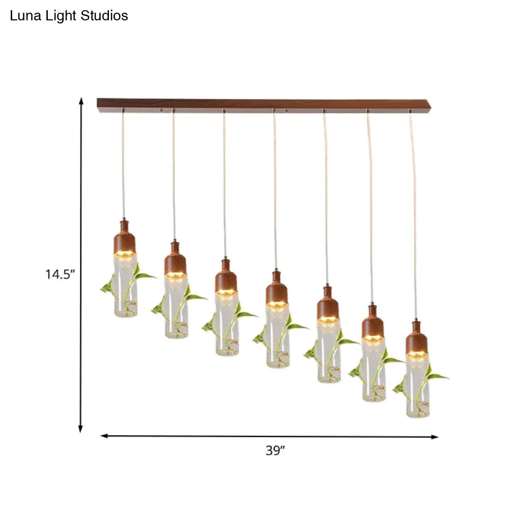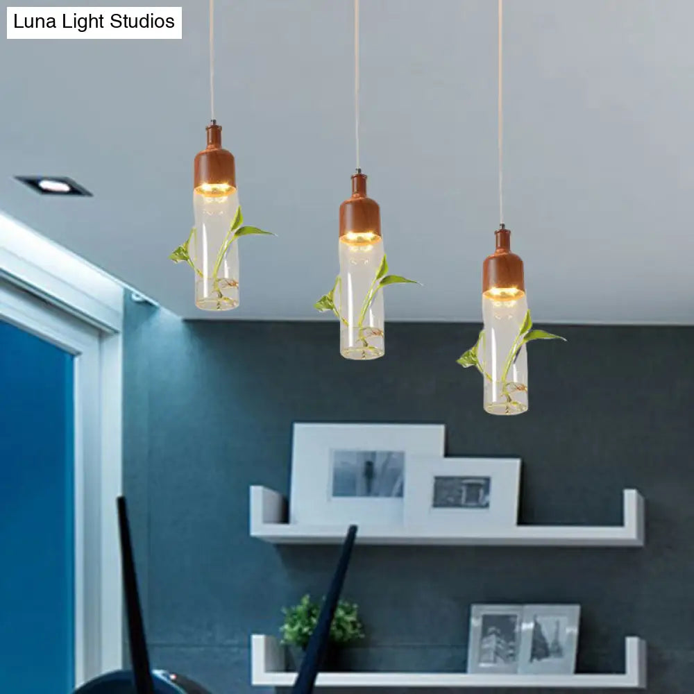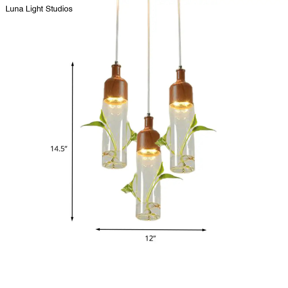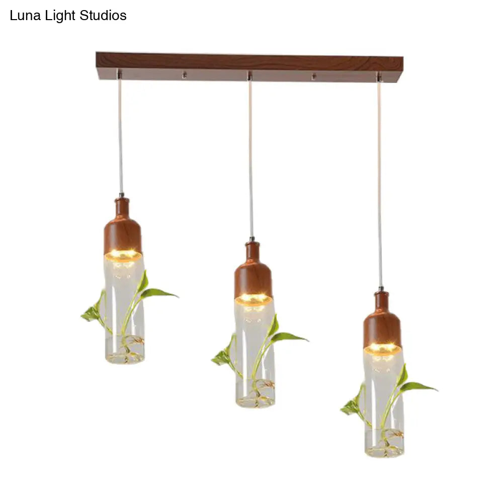 Lámpara de techo colgante con forma de racimo de botellas de vino antiguas - LED metálico con múltiples bombillas, acabado marrón