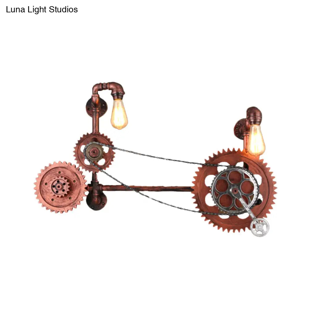 Aplique de pared de hierro con forma de bicicleta envejecida con 2 luces para pasillo