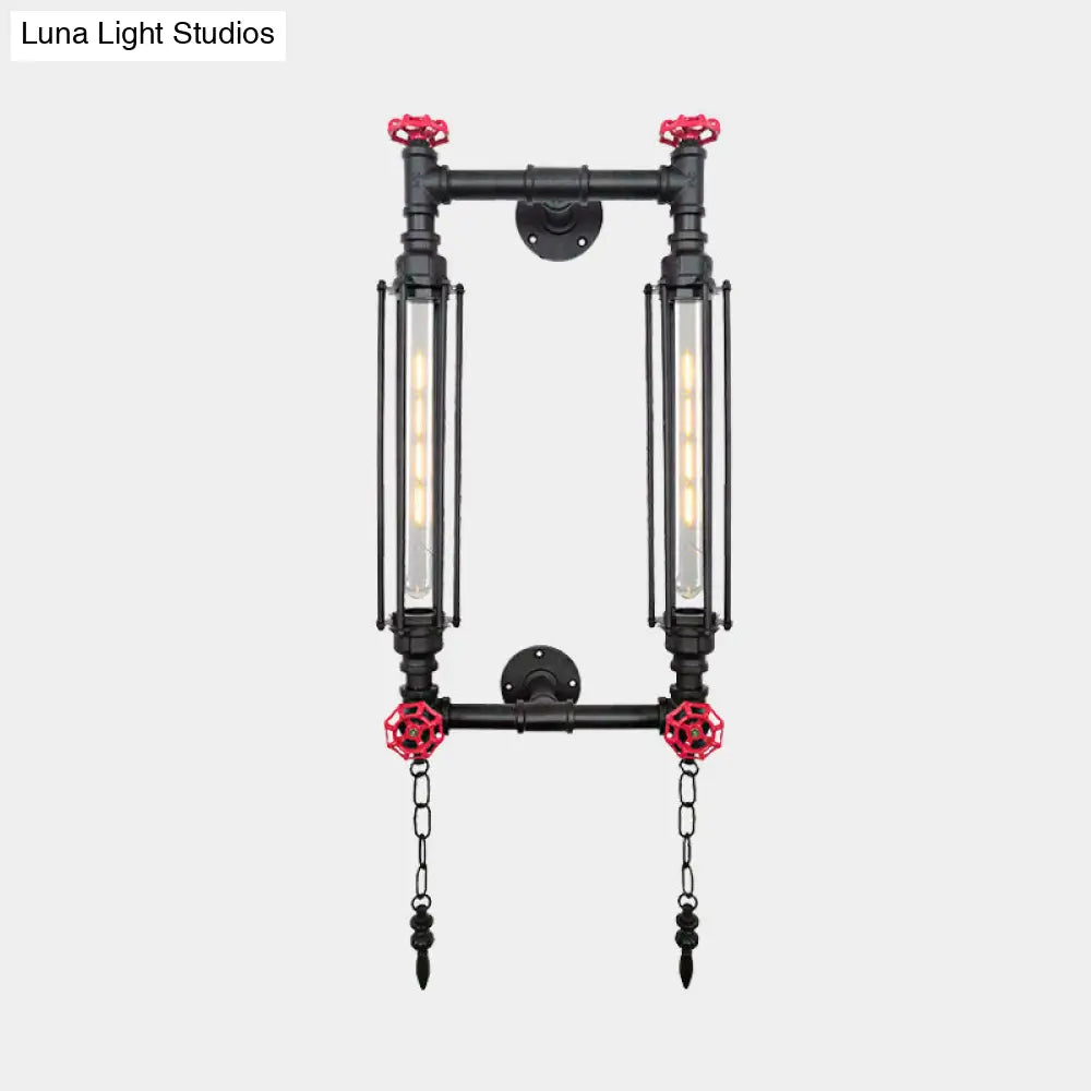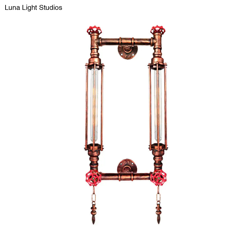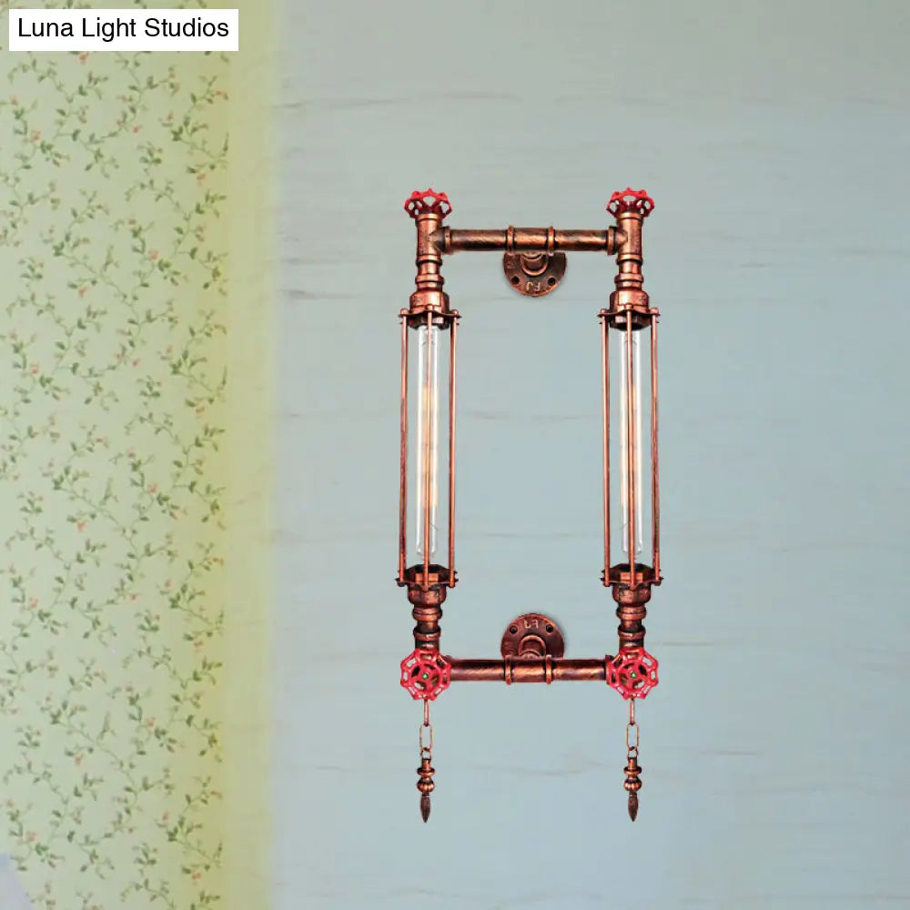 Aplique de pared rectangular con marco de metal envejecido - 2 luces - Negro/Cobre