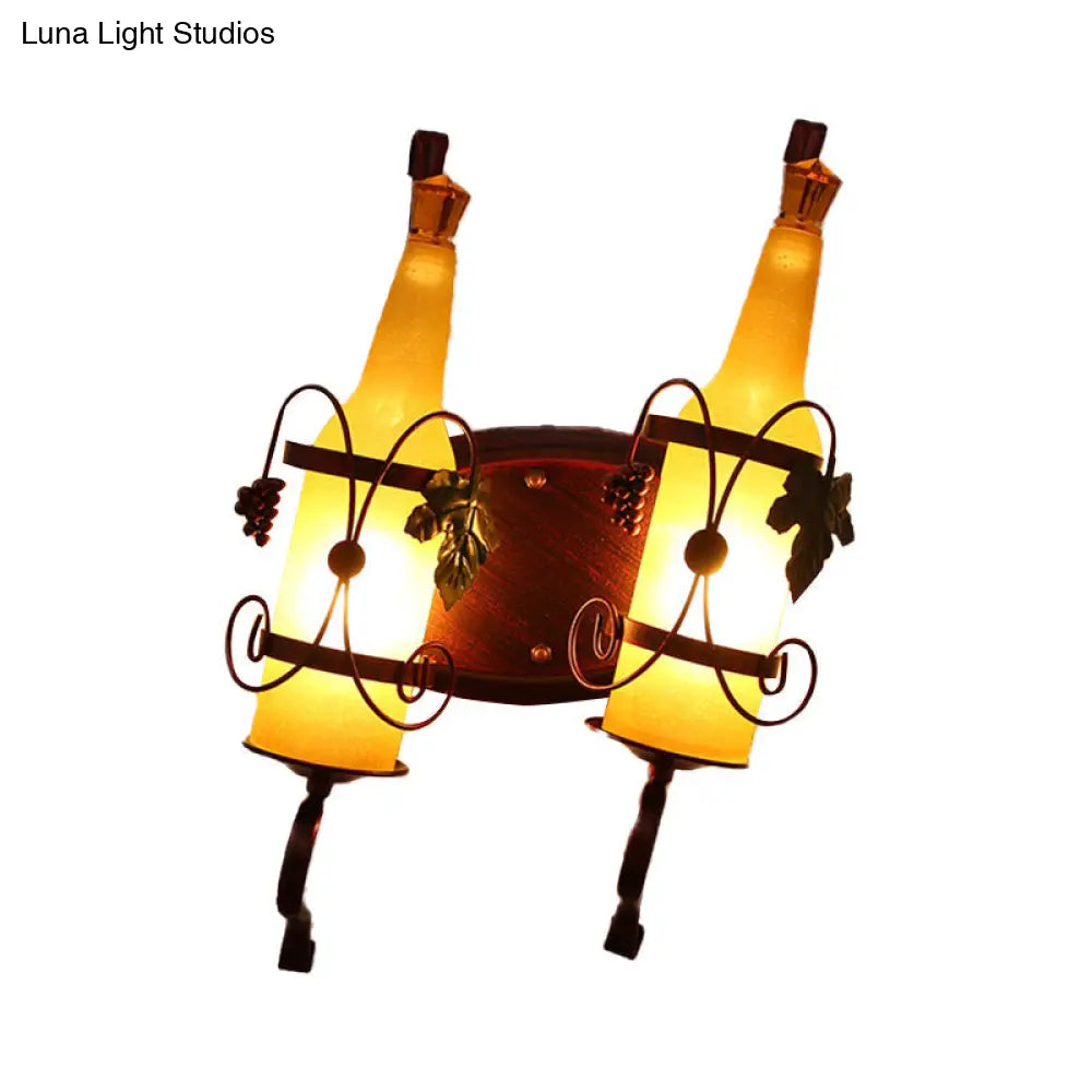 Lámpara de pared Art Déco con soporte para botellero - 2 bombillas, cristal amarillo/verde/rojo/blanco, acabado cobre