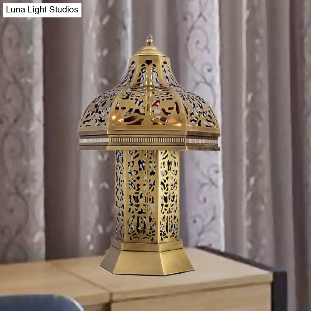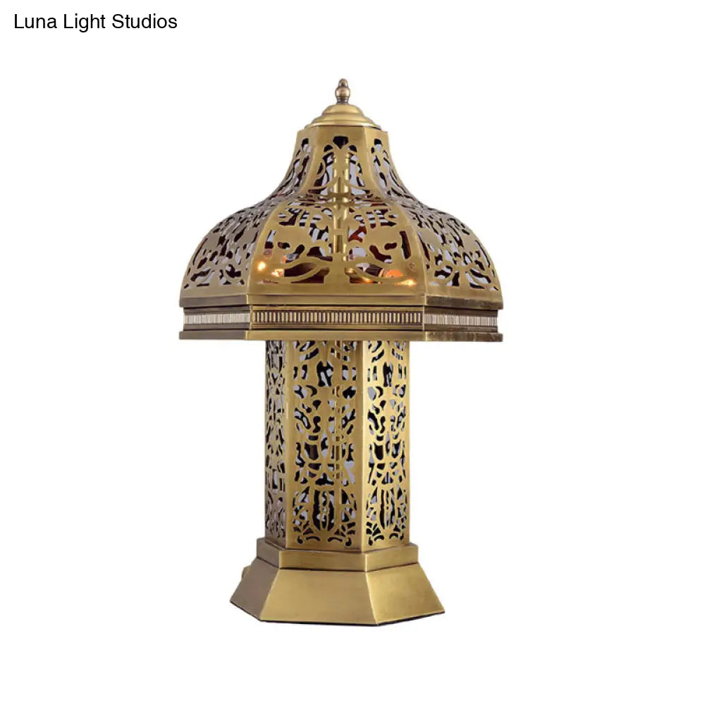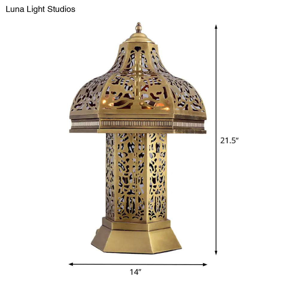 Lámpara de mesa/noche Art Déco con forma de seta en latón - 3 bombillas - Decoración para dormitorio