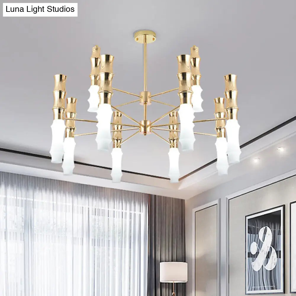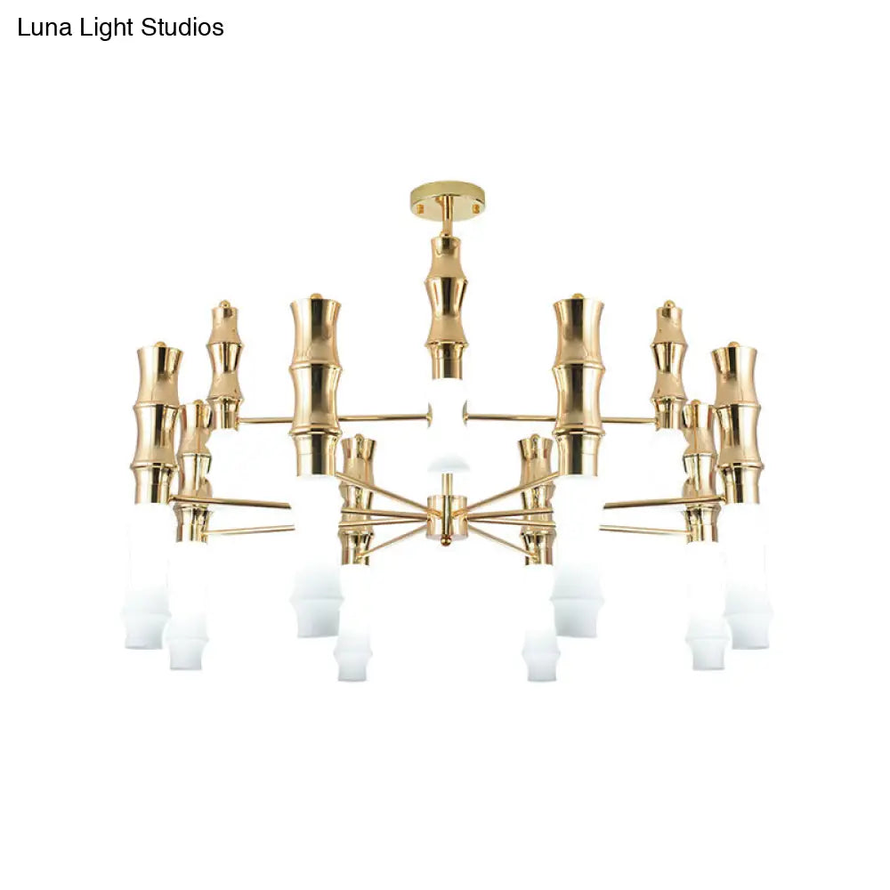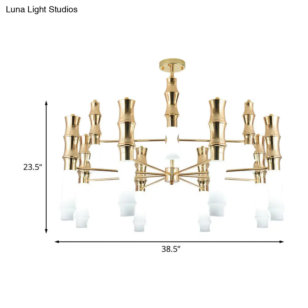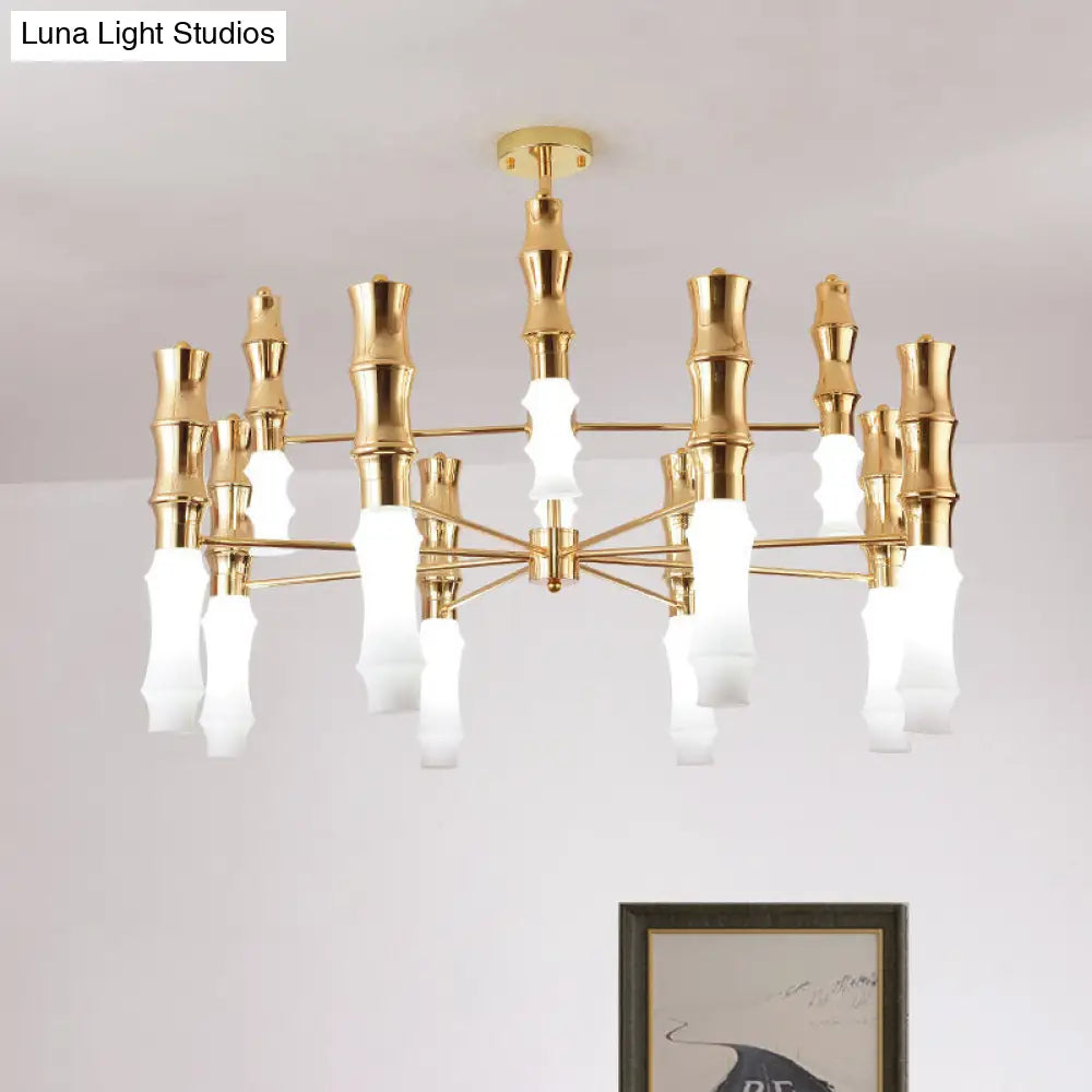 Lámpara de araña moderna de bambú dorado con diseño Sputnik - Lámpara colgante de metal de 12 luces