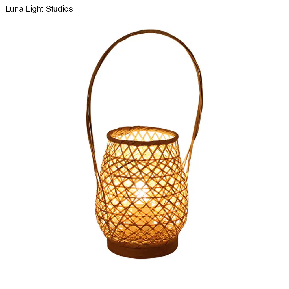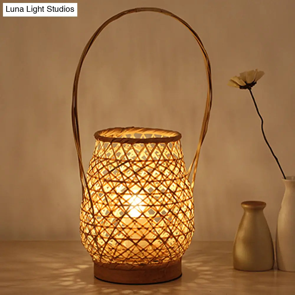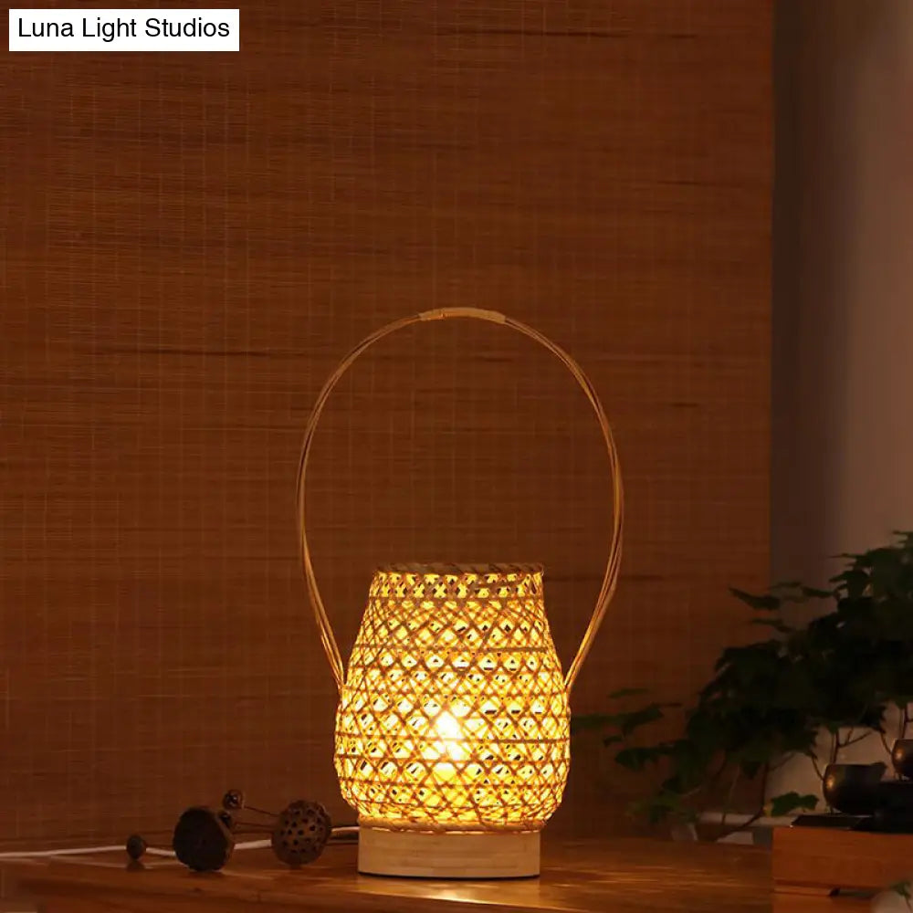 Lámpara de escritorio pequeña de bambú, de un cabezal, color lino, con brazo curvo - Iluminación de trabajo china